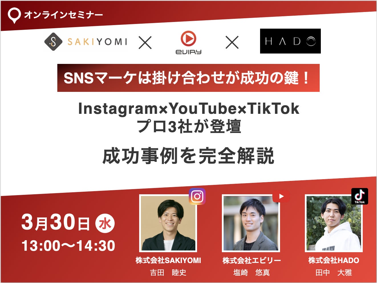 Instagram×YouTube×TikTokプロ3社が登壇。SAKIYOMIとエビリーとHADOが共催セミナーを開催