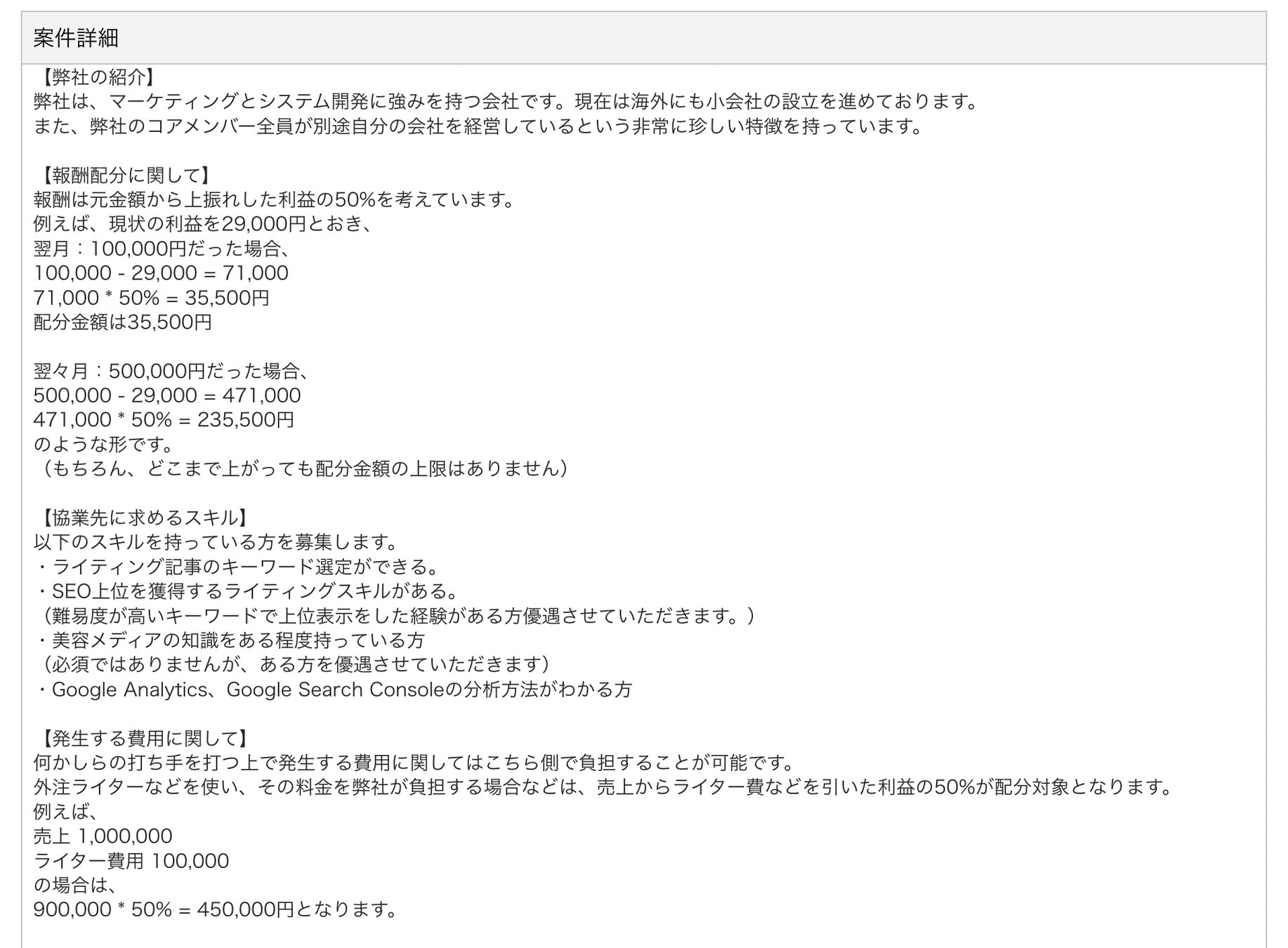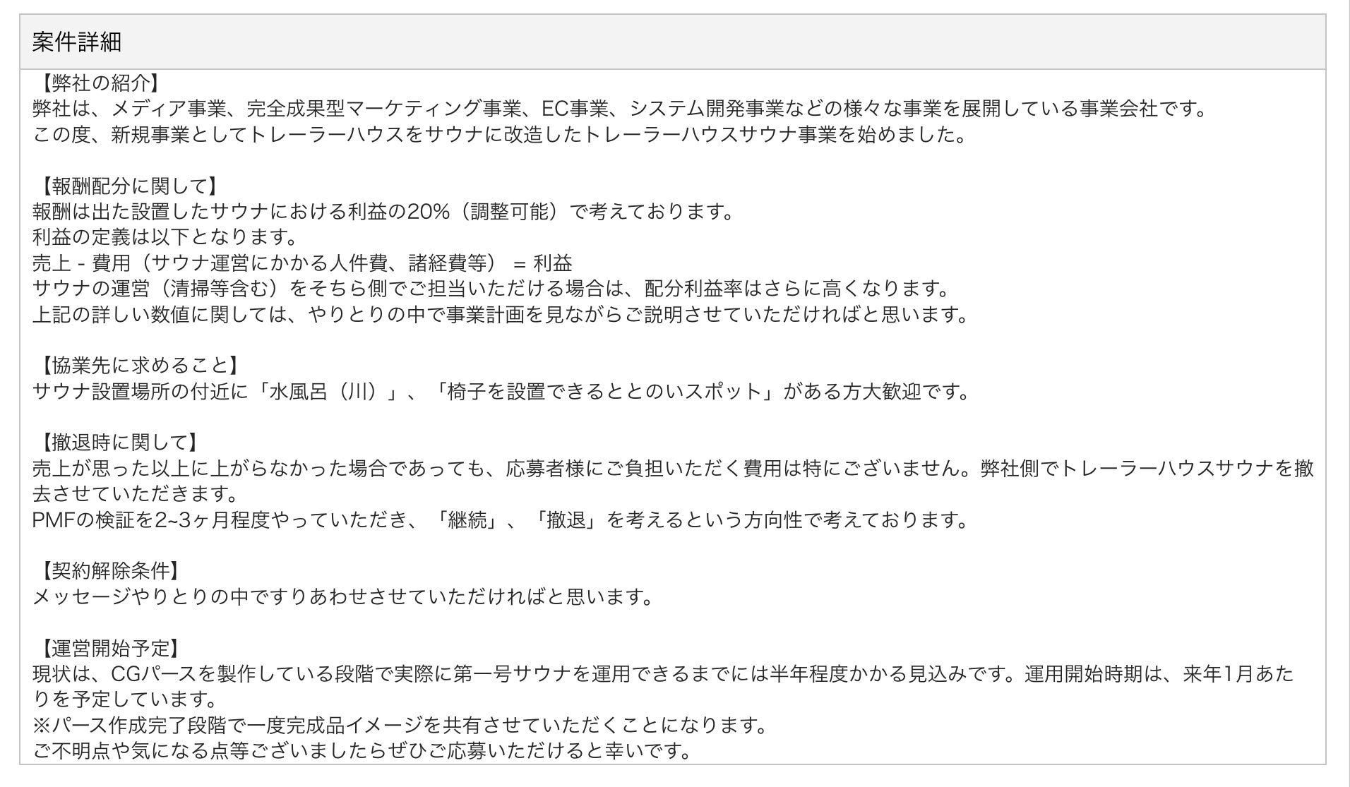 - 応募者(起業家・実業家):パートナーとリスクを共有しながら、結果を出して自分の実績を作りたい!