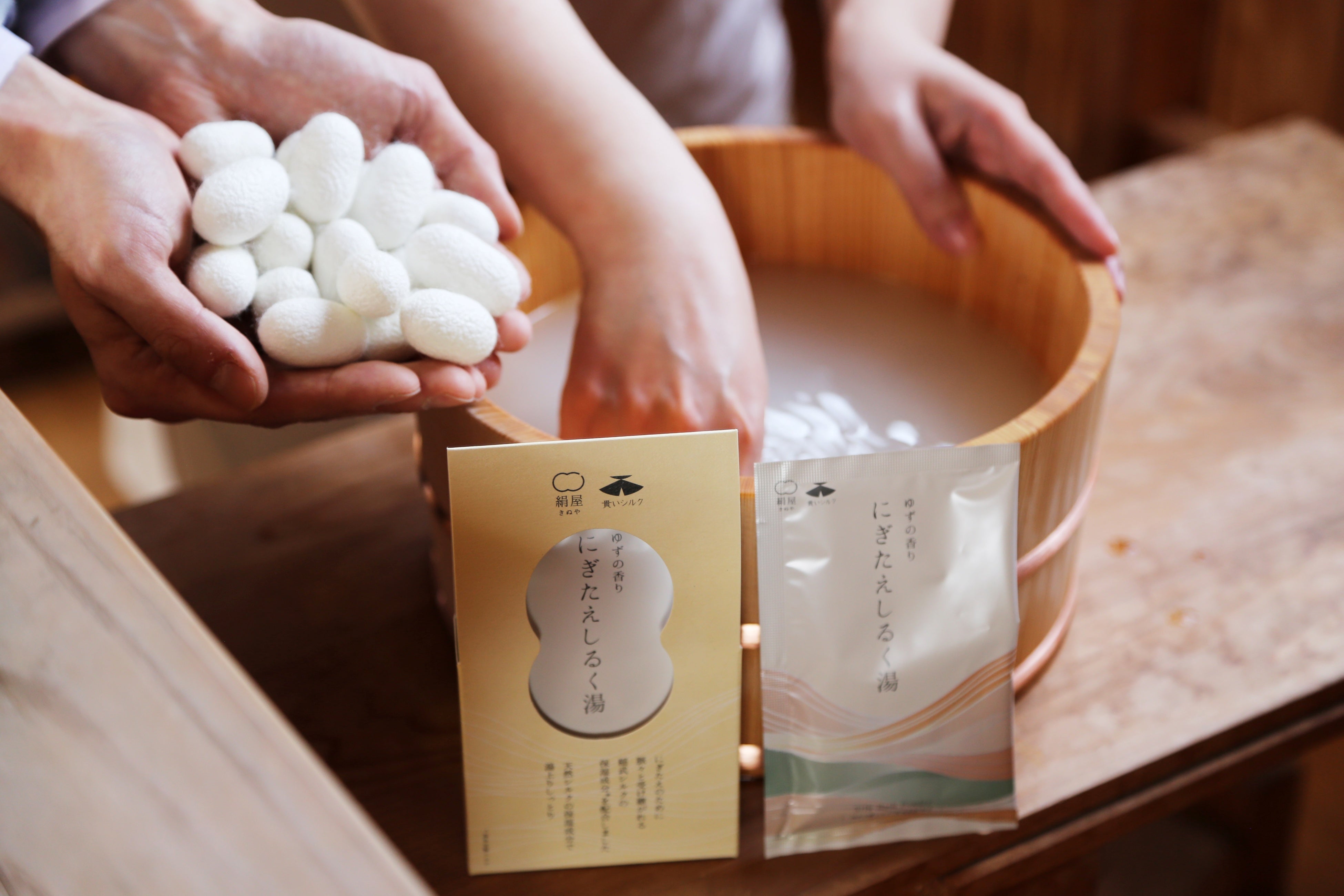 そんな稲武の貴く特別なシルクを、できるだけ多くの方に知っていただき、守り伝えるために、稲武シルクの保湿成分を配合した入浴剤をつくりました。