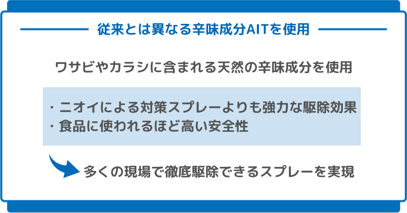 従来とは異なる辛味成分AITを使用することで忌避効果アップを実現