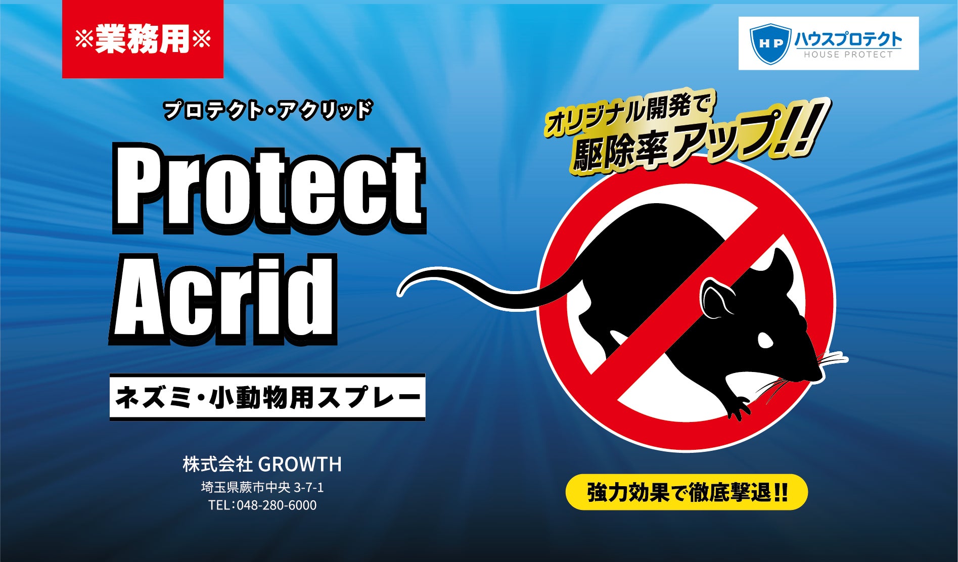 害獣駆除業者「ハウスプロテクト」を運営する株式会社GROWTHが、従来とは異なる成分AITを使った業務用プロ仕様のネズミ・小動物用オリジナルスプレーを開発