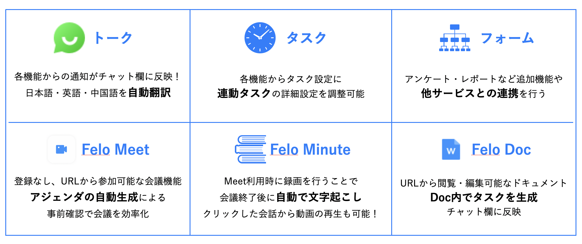 - Feloを通した作業効率の向上を体感していただくため、機能を全て無料で提供致します。