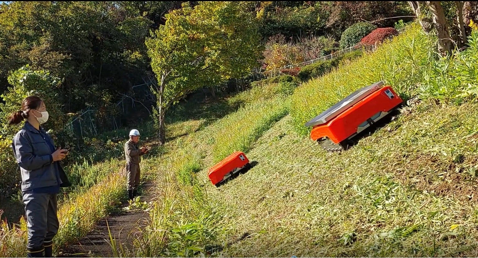 従来の草刈りは、肩掛け式のエンジン草刈り機が多く、作業しにくい傾斜地での安全性、作業効率が課題となっていました。 本商品は、ラジコンによる簡単な操作で、100m の遠隔操作が可能な草刈り機です。全電動のため騒音も小さく、草丈1m以上の草刈が可能で、独自のクローラーベルトにより安定性が高く、45 度の傾斜地でも使用可能としたもので、新規性と技術が認められたものです。