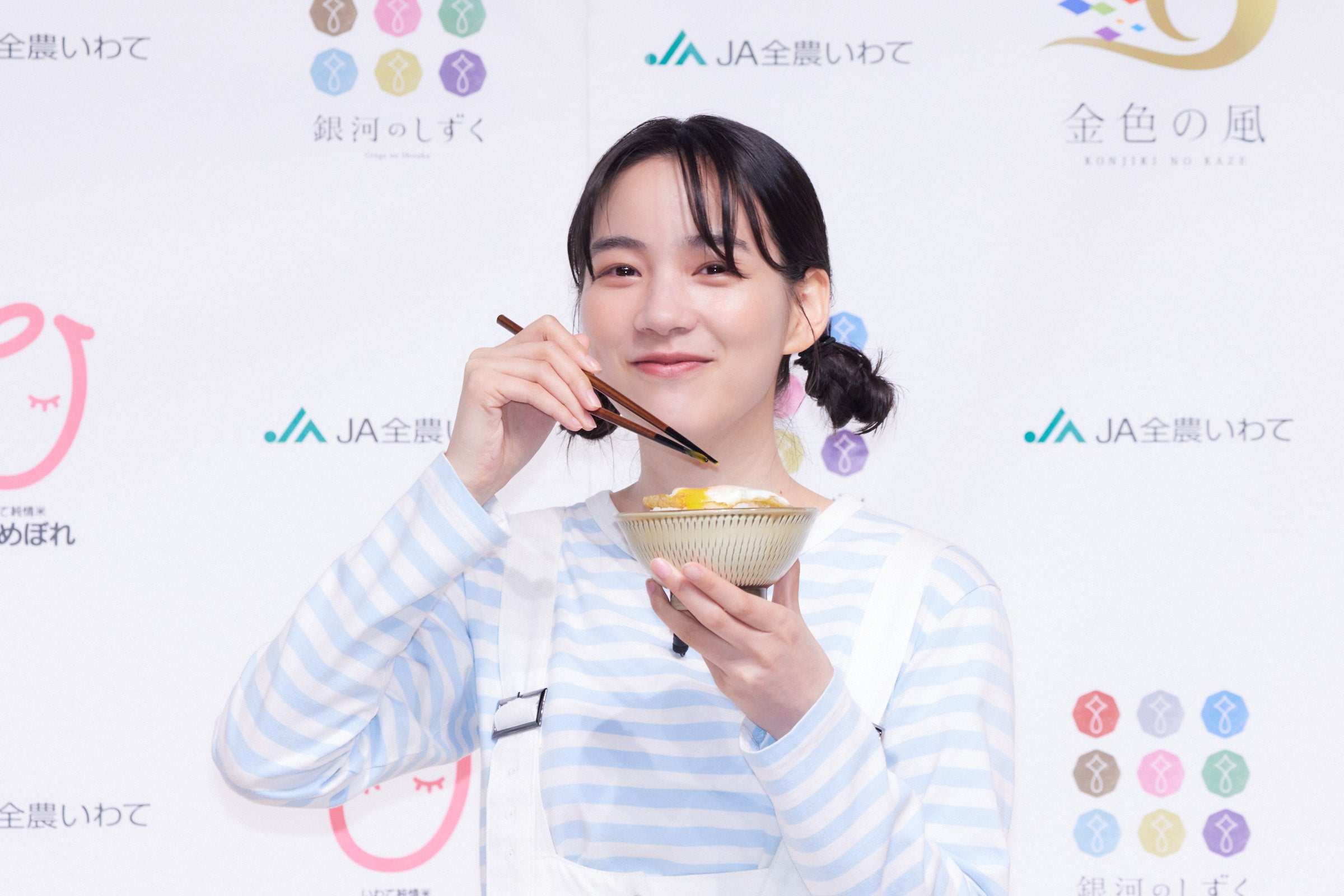 続いて「岩手県産ひとめぼれ」を食べると、大きくうなずきながら『もちもちしていて、粒の弾力もあり、とても美味しいです』と魅力をお伝えいただきました。また、一緒に食べた一押しのおかずについて質問をされると、『かつおぶしや焼鮭も好きなんですが、CM内でもいただいた目玉焼きがすごく絶品でした』との感想をいただきました。