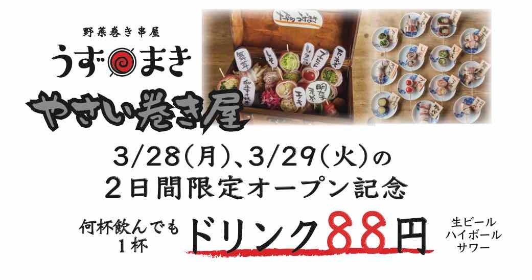 3月28日、29日の2日間はドリンク1杯88円!!!