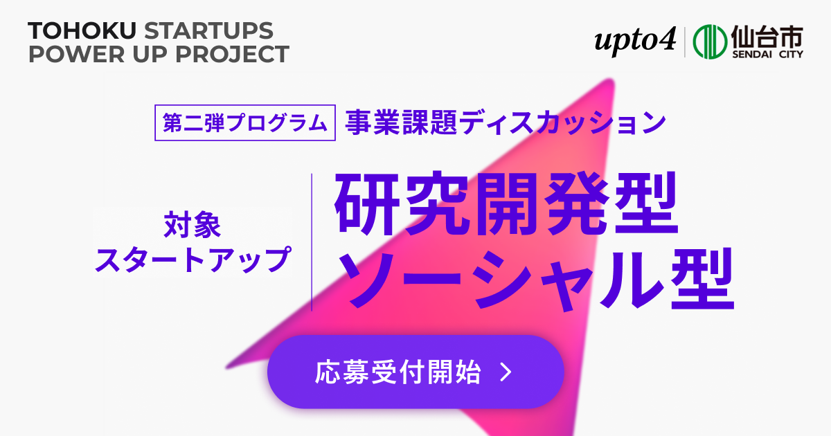 upto4、仙台や東北の研究開発型・ソーシャルスタートアップ向け「事業課題ディスカッションプログラム」の参加者募集開始