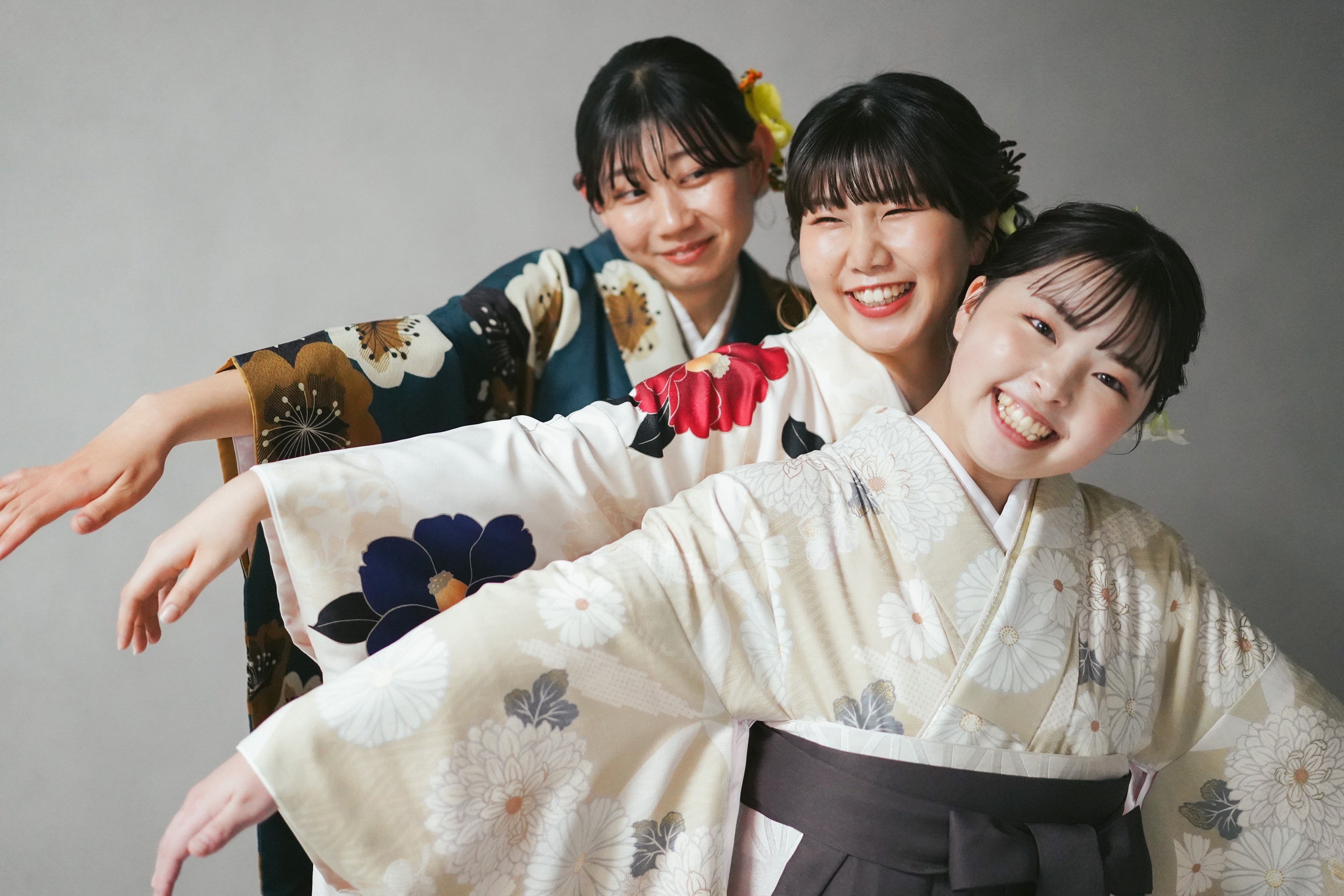 これまで一緒に過ごしてきた友だちとの時間や思い出はかけがえのないもの。型にはまった記念写真ではなく、ユニークな個性や仲間の関係性がにじみ出るような瞬間を写真に収めます。また、45分間の撮影中にはお着替えも可能。思い出の詰まった制服やユニフォーム、お揃いの袴姿など、撮影体験も思い出の1ページとして楽しんでいただけます。