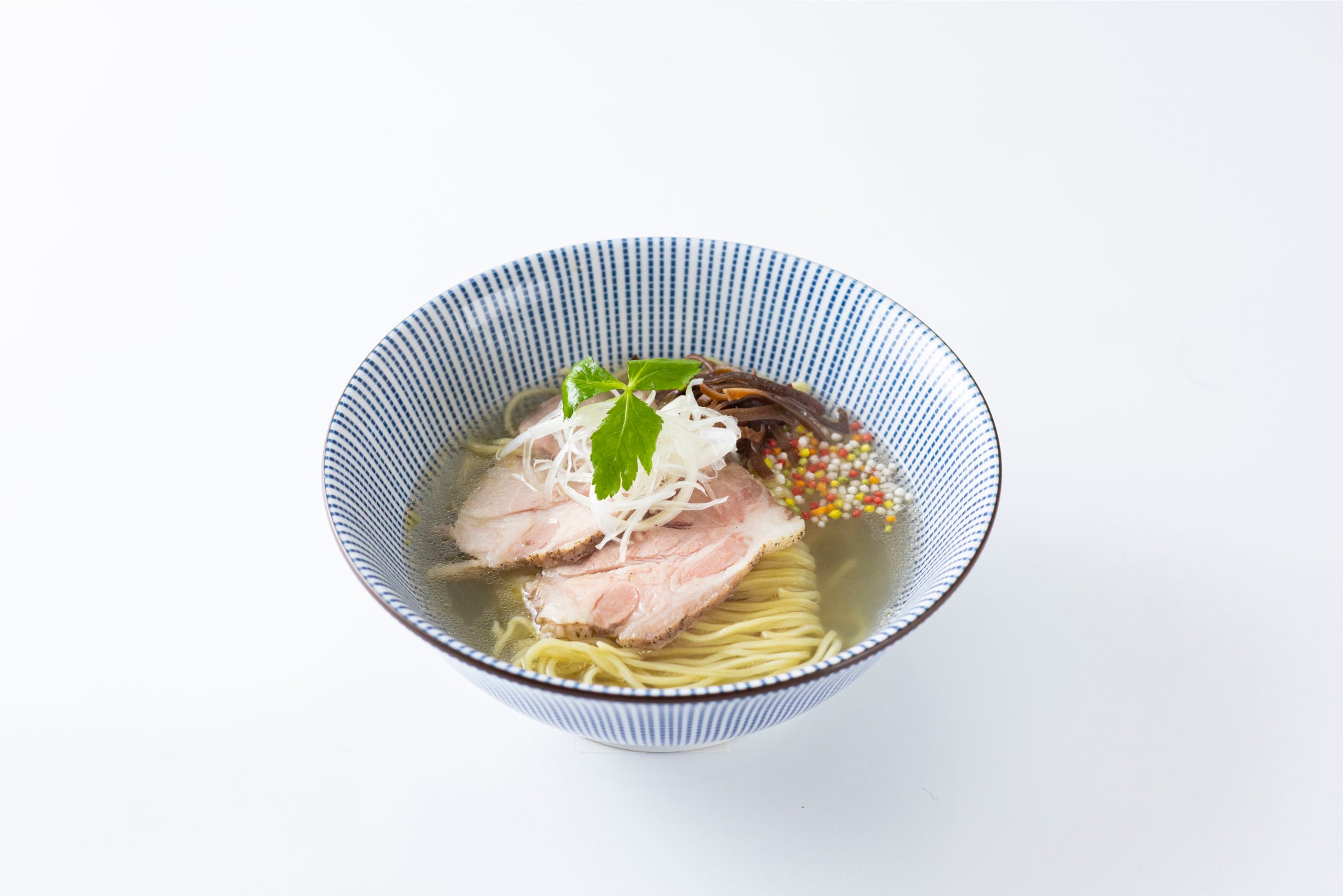 軍鶏、丸鶏などを使用し、八時間スープの表面が揺らぐ程度でじっくりと旨味を抽出して丁寧な清湯スープに仕上げている。塩だれは、海と山と湖で採れた日本、イタリア、フランス、モンゴルなどの数種類の塩を使用。