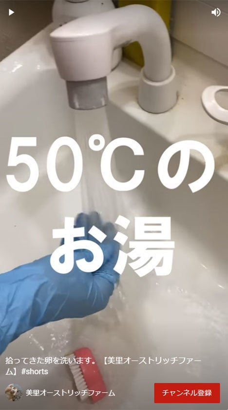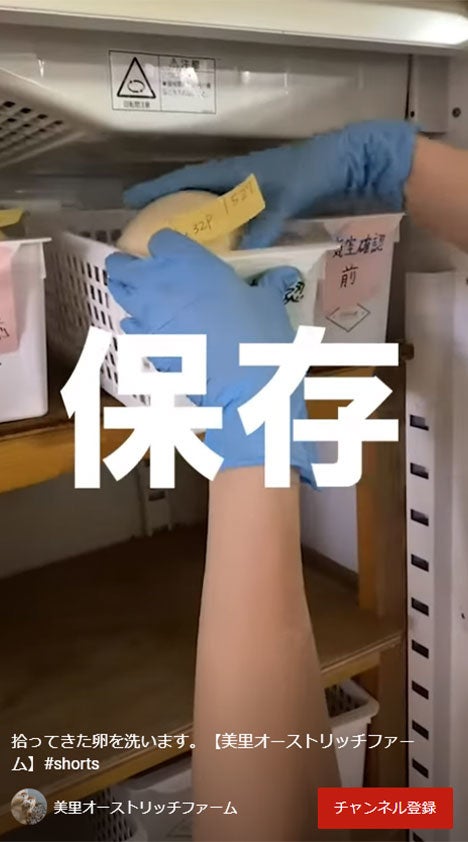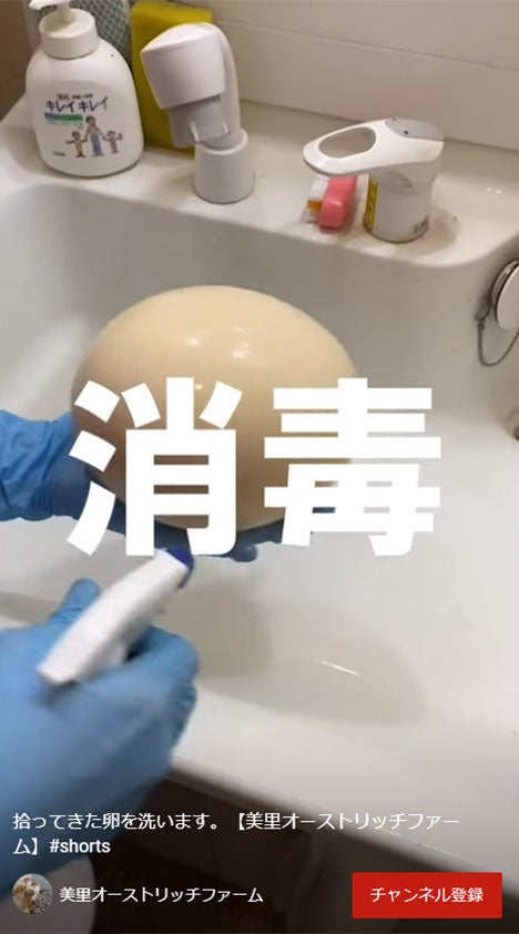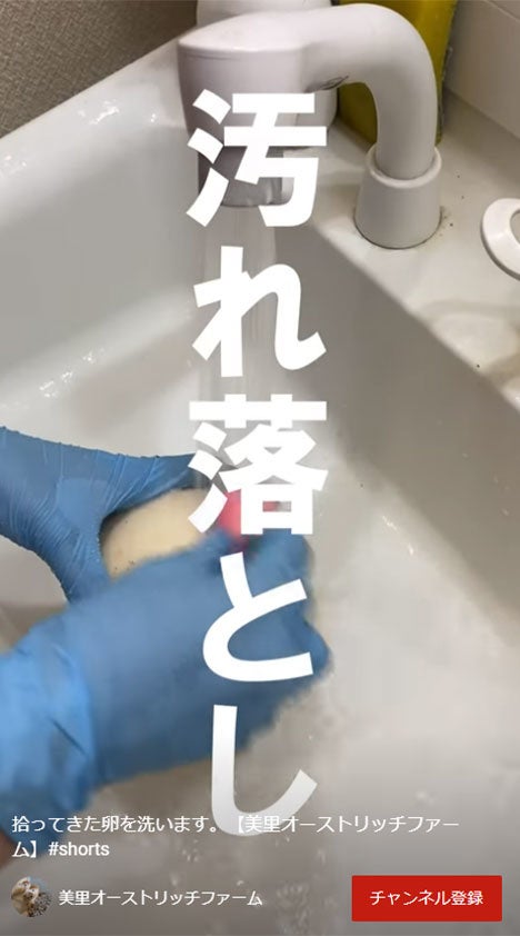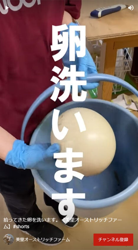 美里オーストリッチファーム(埼玉・美里町)が公式YouTubeチャンネル(https://www.youtube.com/channel/UC4gTo35WI8KnVimWaJQFNUg)に投稿したもので「牧場で拾ってきた卵を洗います」という内容だ。動画では当牧場で飼育員が牧場でダチョウの卵を拾ってきたものを洗って保存するまでの様子を見ることができる