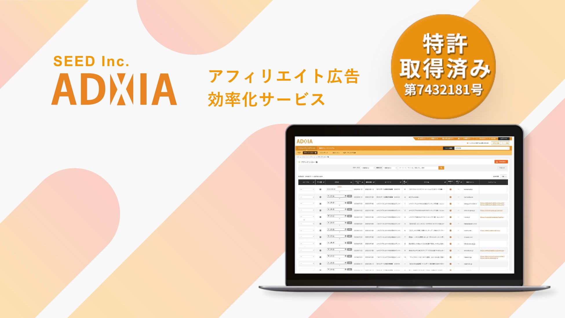 アフィリエイト広告の代理店である株式会社シード(本社:東京都千代田区、代表取締役:池田智之)は、アフィリエイト広告運用の効率化を目的としたSaaSツールADXIA(アドシア)において、アフィリエイトサイト内のアフィリエイトリンクを分析する機能に関する特許を取得いたしました。