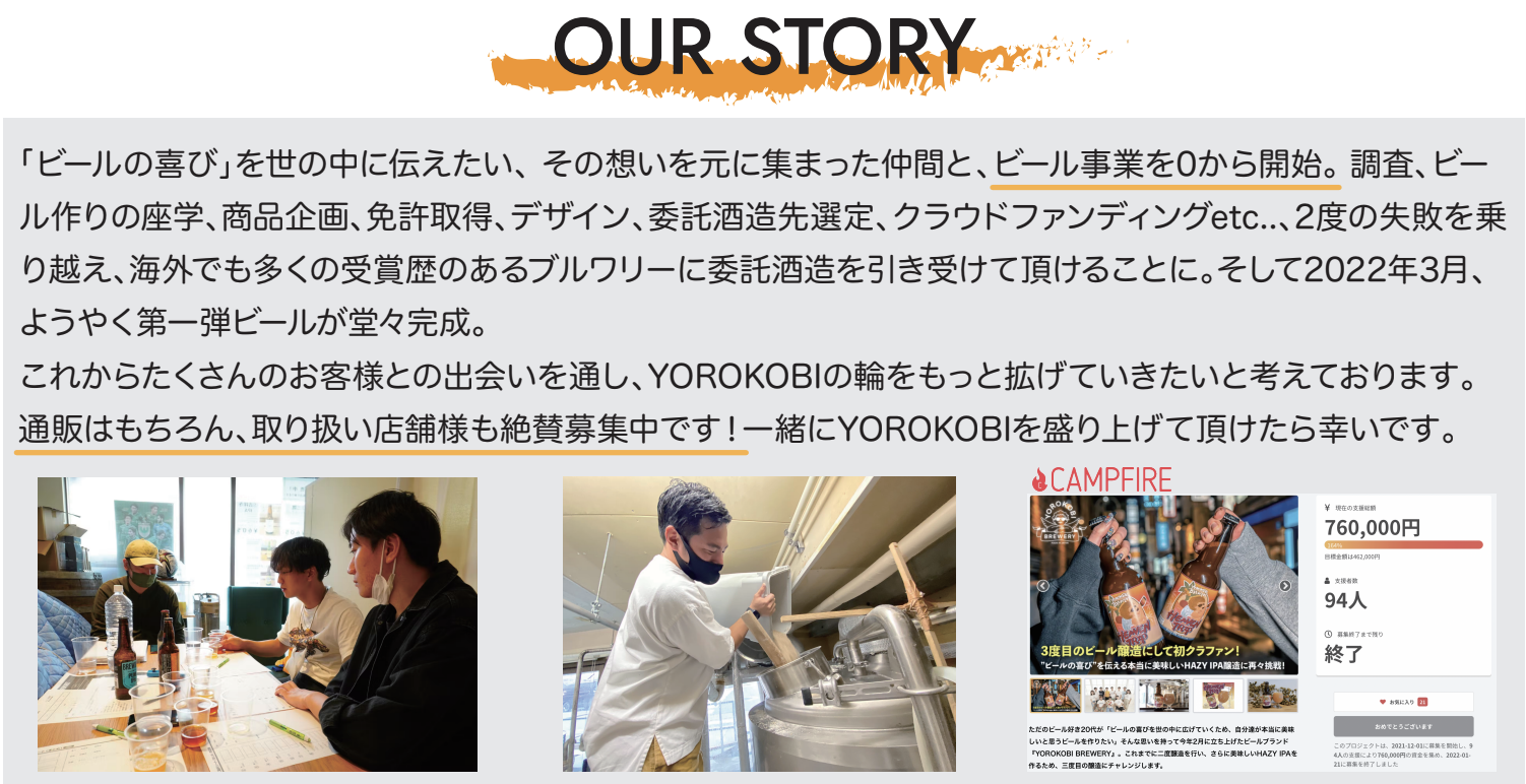 ・ビール酒造販売事業「YOROKOBI BREWERY」https://yorokobi.me/