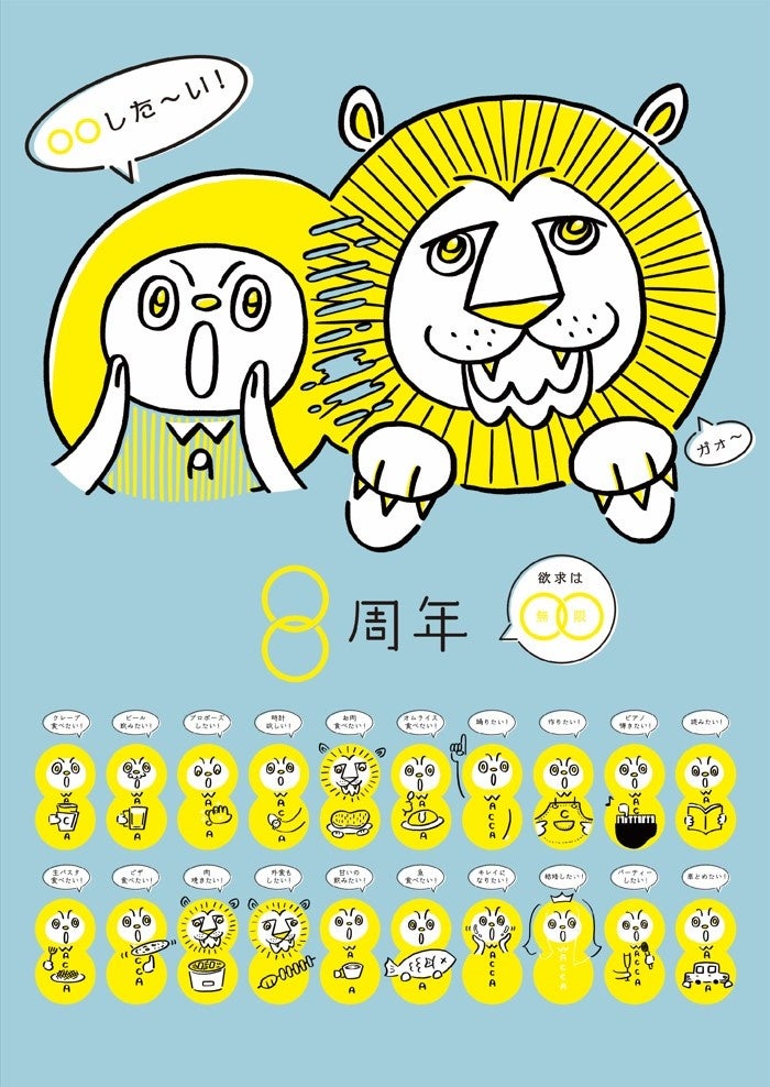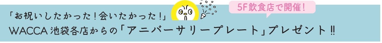 各線池袋駅東⼝徒歩3分、⼈と⼈との繋がりをテーマとした新しい価値と魅⼒の創出を目指す複合商業ビル「WACCA(ワッカ)池袋」(栄真株式会社:東京都豊島区、代表取締役社⻑ 簱栄⼀郎)の開業8周年に合わせて、池袋アートギャザリング奨励賞・WACCA池袋賞の杉本憲一さん書下ろしのビジュアルを館内装飾にも展開する他、感染症拡大により、お祝い・記念日・セレモニーなどを集合して開催しづらい時勢下において、小さくでもその機会をご提供出来るよう、各飲食店舗にて趣向を凝らした「アニバーサリープレート」を先着プレゼント致します。