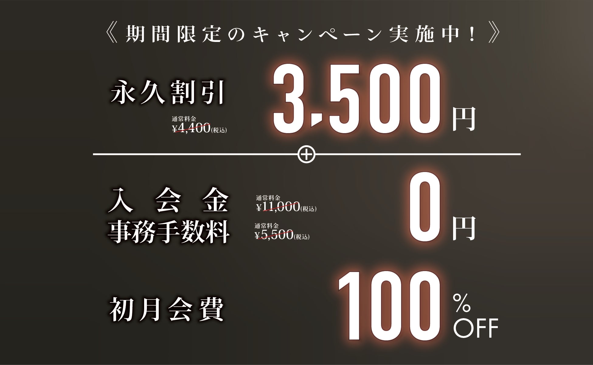 ●料金体系:(完全会員制)4,400円/月~(税込)、