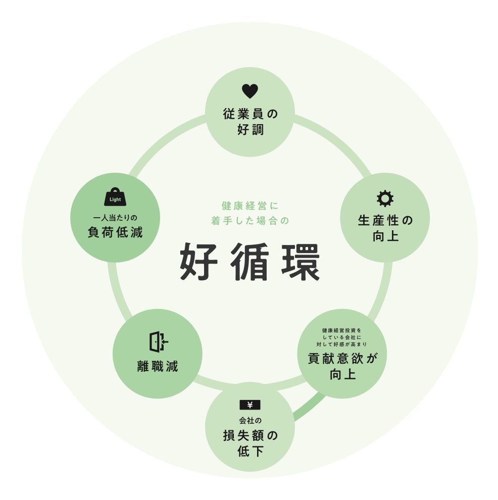 健康経営とは、企業が従業員の健康を経営的な視点で戦略的に考え、積極的に健康投資を行うことで、組織の活性化や業績向上を目指す経営手法です。日本再興戦略、未来投資戦略に位置づけられた「国民の健康寿命の延伸」に関する取り組みの一つであり、経済産業省では健康経営に係る各種顕彰制度も定められております。
