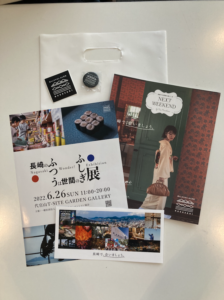 また、来場者には長崎の楽しみ方が書かれた冊子や長崎市の観光ブランドのロゴがデザインされた缶バッジ、長崎の魅力をプリントしたポストカードをお配りしました。本展を東京で開催することで全国へ発信されることを期待するとともに、地元長崎の人にも古里の魅力を再発見するきっかけになると考えています。9/23には西九州新幹線の開業というニュースもあり、この機会に長崎市へ来訪いただきたいと考えています。