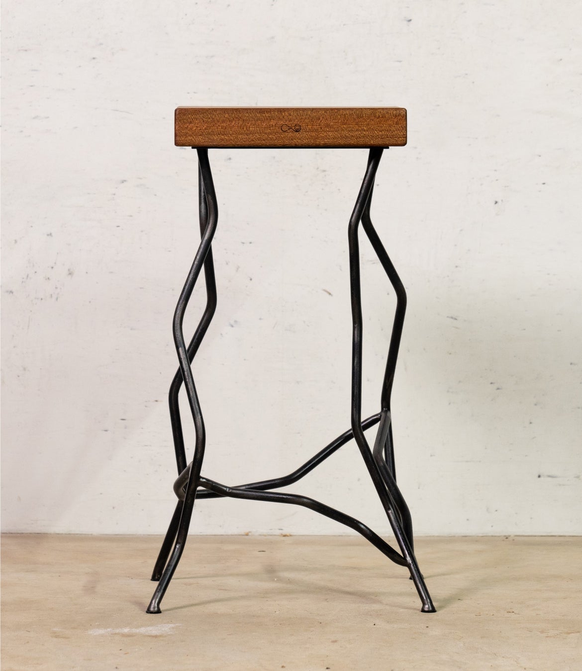 4本の鉄脚にひもを巻きつけ、結び目を付けたような柔らかな質感が特徴的。