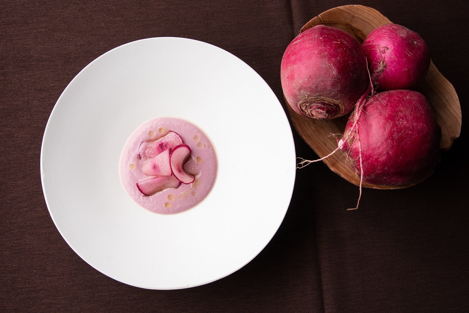 ■赤蕪のポタージュ (レシピ監修:シンシア / 石井真介シェフ 農家:高農園)