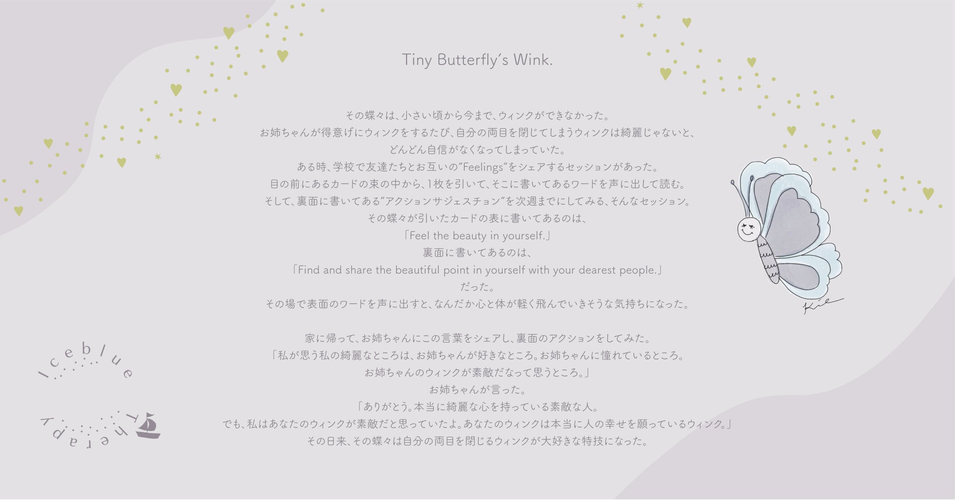 「Iceblue Therapy Card」は、あなたのためのセラピーカードです。カードを引くと、まるでセラピーを受けたかのような穏やかで軽やかな気持ちに、蝶々が守り導いてくれます。