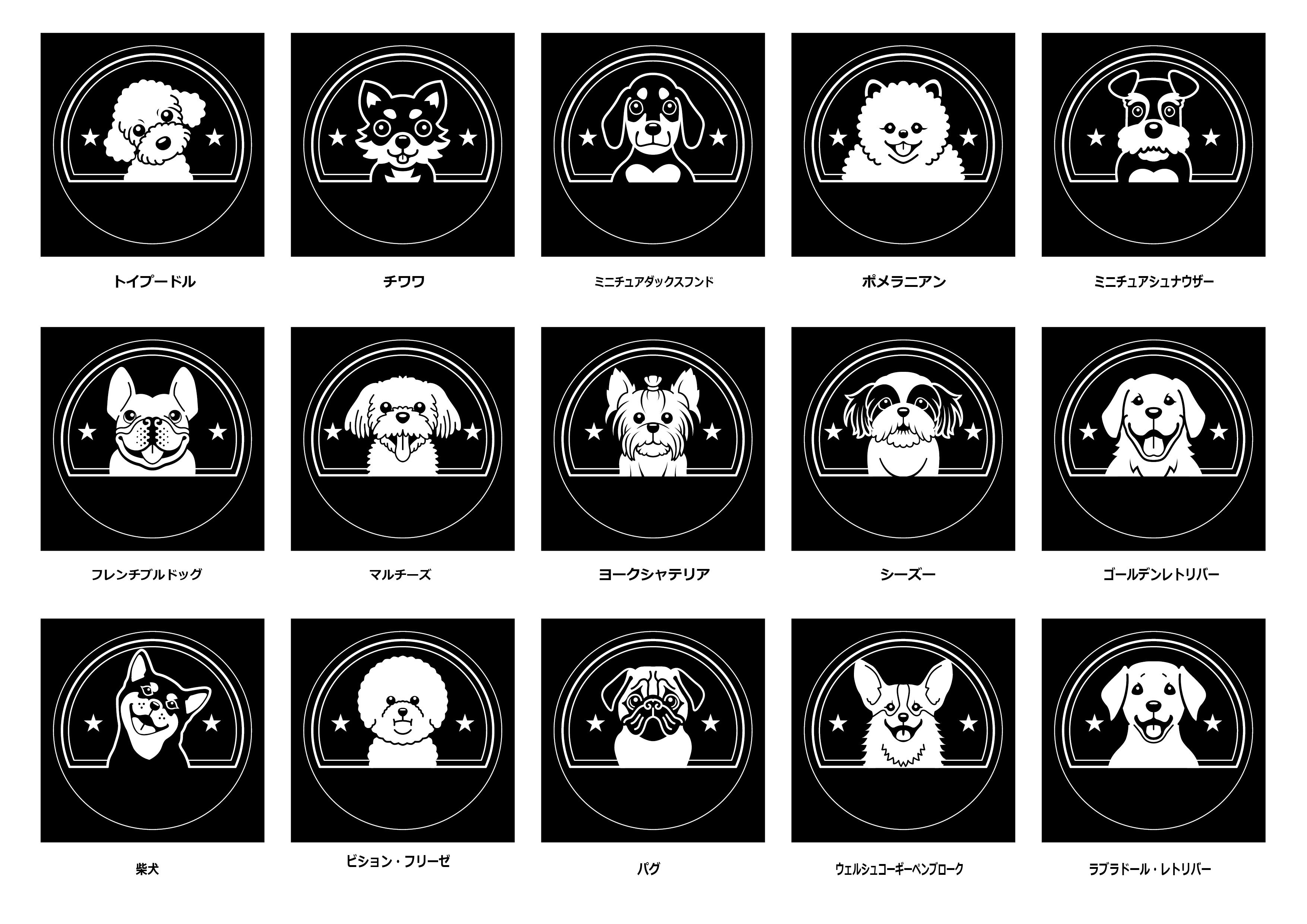 -15種類の人気犬種イラストから選べて好きな文字を入れられるカスタムオーダー方式