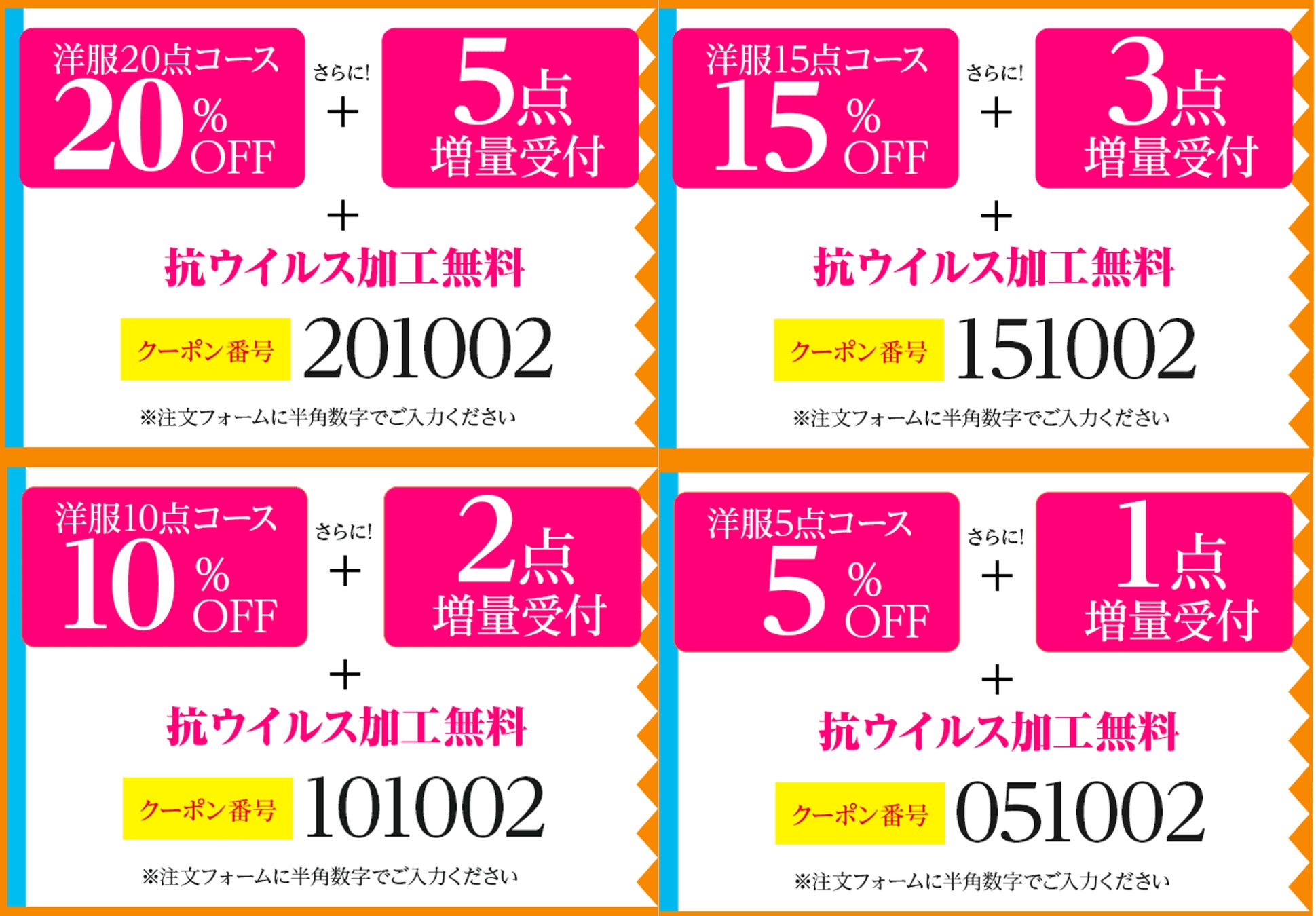 10%OFF+2点増量受付+抗ウイルス加工無料