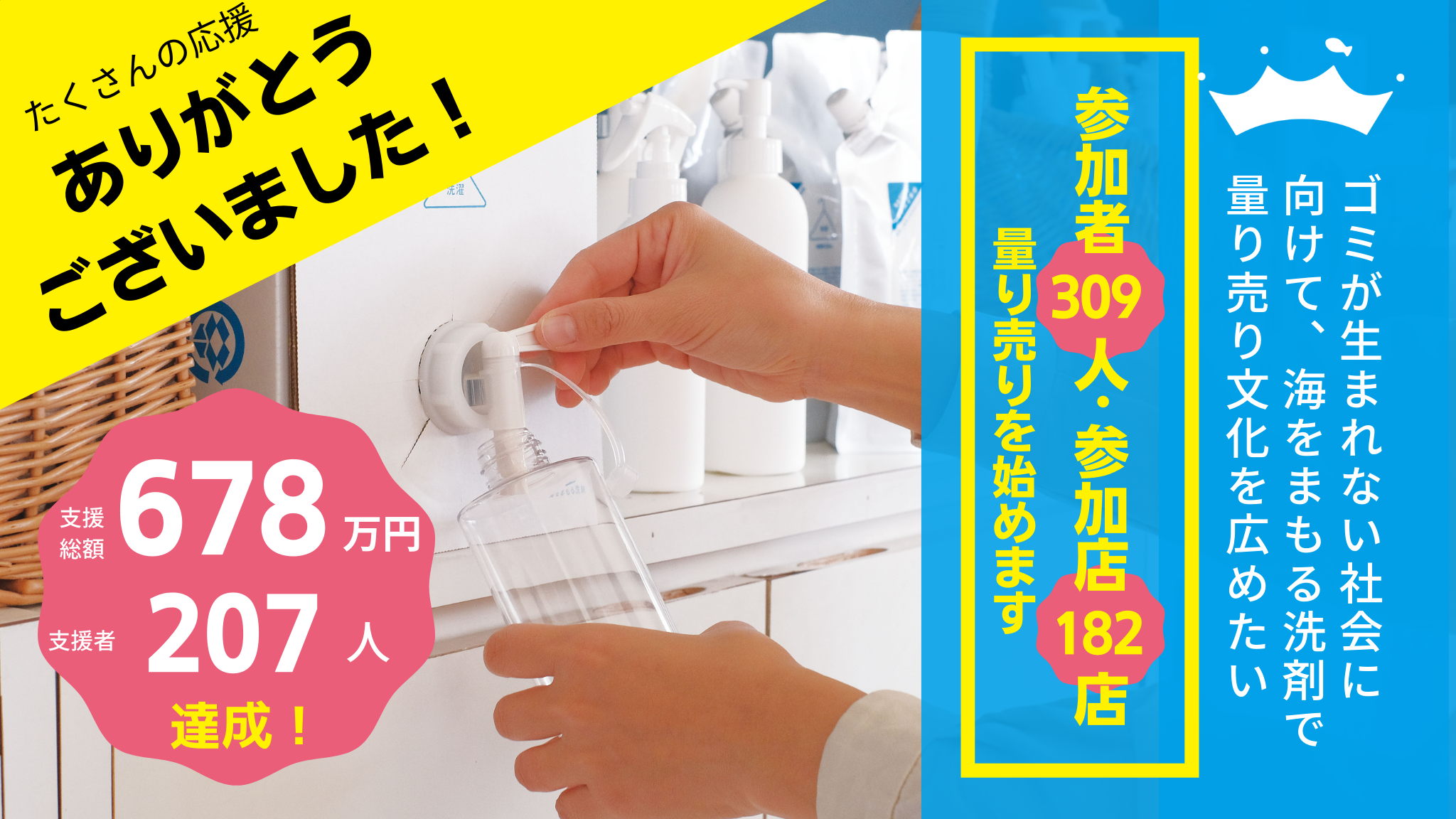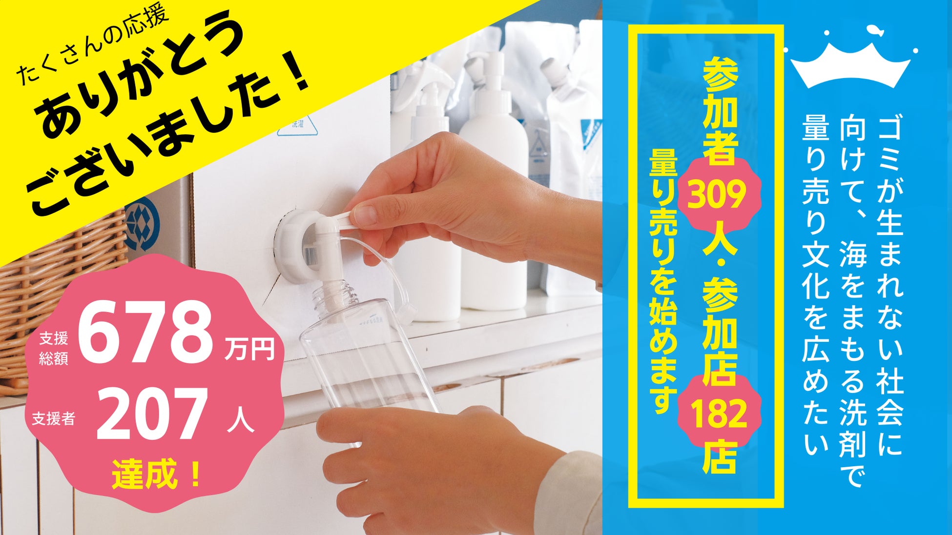 海をまもる量り売り クラウドファンディング678%達成、182店舗309人が参加