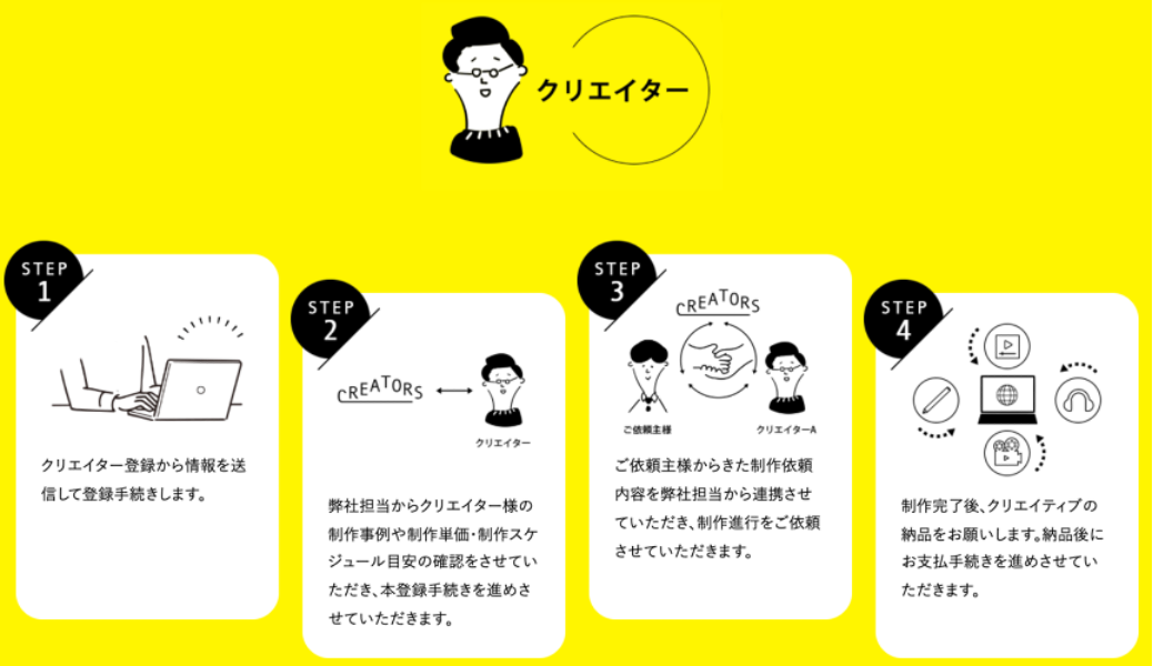 また、フリーランス・副業で活動している優秀なクリエイターを依頼主が発掘するのは難しく、同様にクリエイターも個人で新規案件獲得をするのは難しい市場となっています。そのような新しい優秀なクリエイター発掘やクリエイター側の新規案件受注をしやすくする役割も担います。