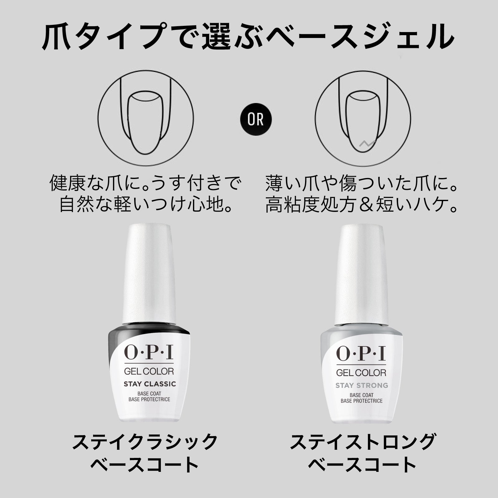 OPIのネイルカラーの特長である、鮮やかな発色、美しいツヤ、塗りやすいハケとボトルを継承する、爪を削らないジェルネイルです。サロン帰りの発色と仕上がりを自宅でも楽しむことができる OPIジェルカラーでセルフジェルネイルをはじめよう。