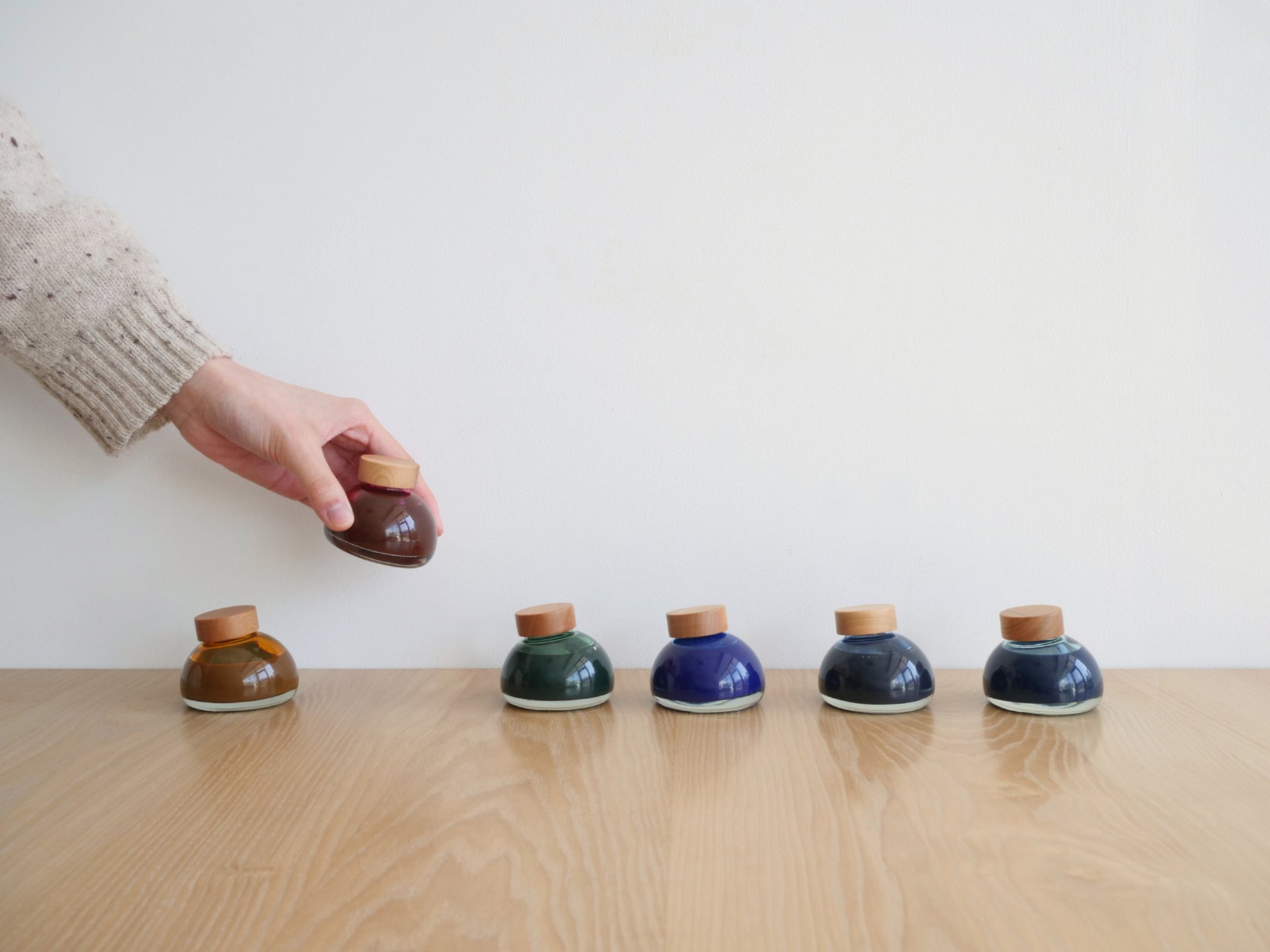 イベントでは、オーダーインクのワークショップと、オリジナルノートの留め具カスタマイズをその場で体験いただけます。また、Yoseka Stationery のためにカキモリがつくったオリジナルインクも同時発売。インクスタンドは要予約、平日のみの開催です。Yoseka Stationery のホームページよりご予約ください。