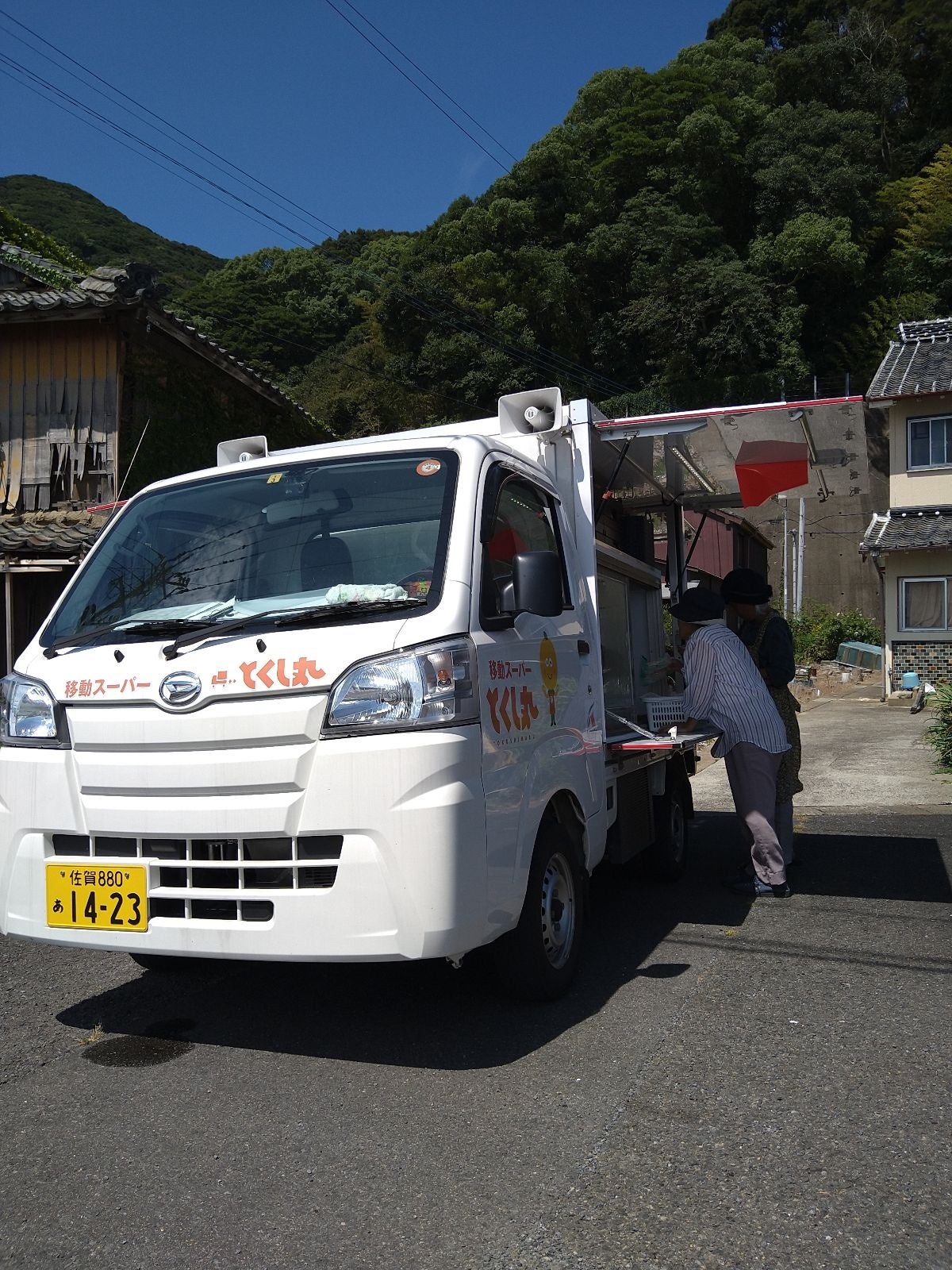 買い物客でにぎわう移動スーパー「とくし丸」