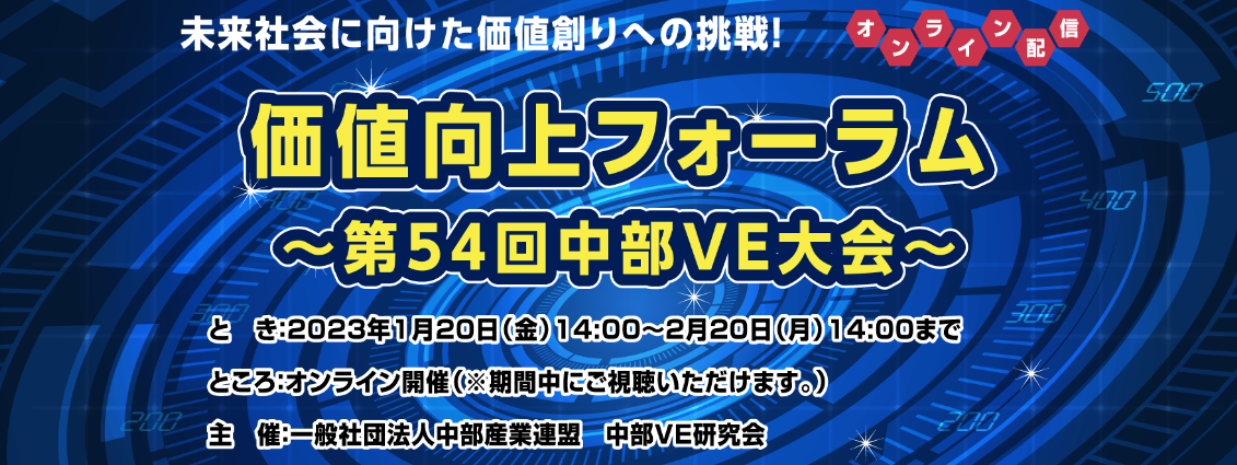 オンラインフォーラム|未来社会に向けた価値創りへの挑戦! 第54回中部VE大会「価値向上フォーラム」開催のお知らせ (一社)中部産業連盟