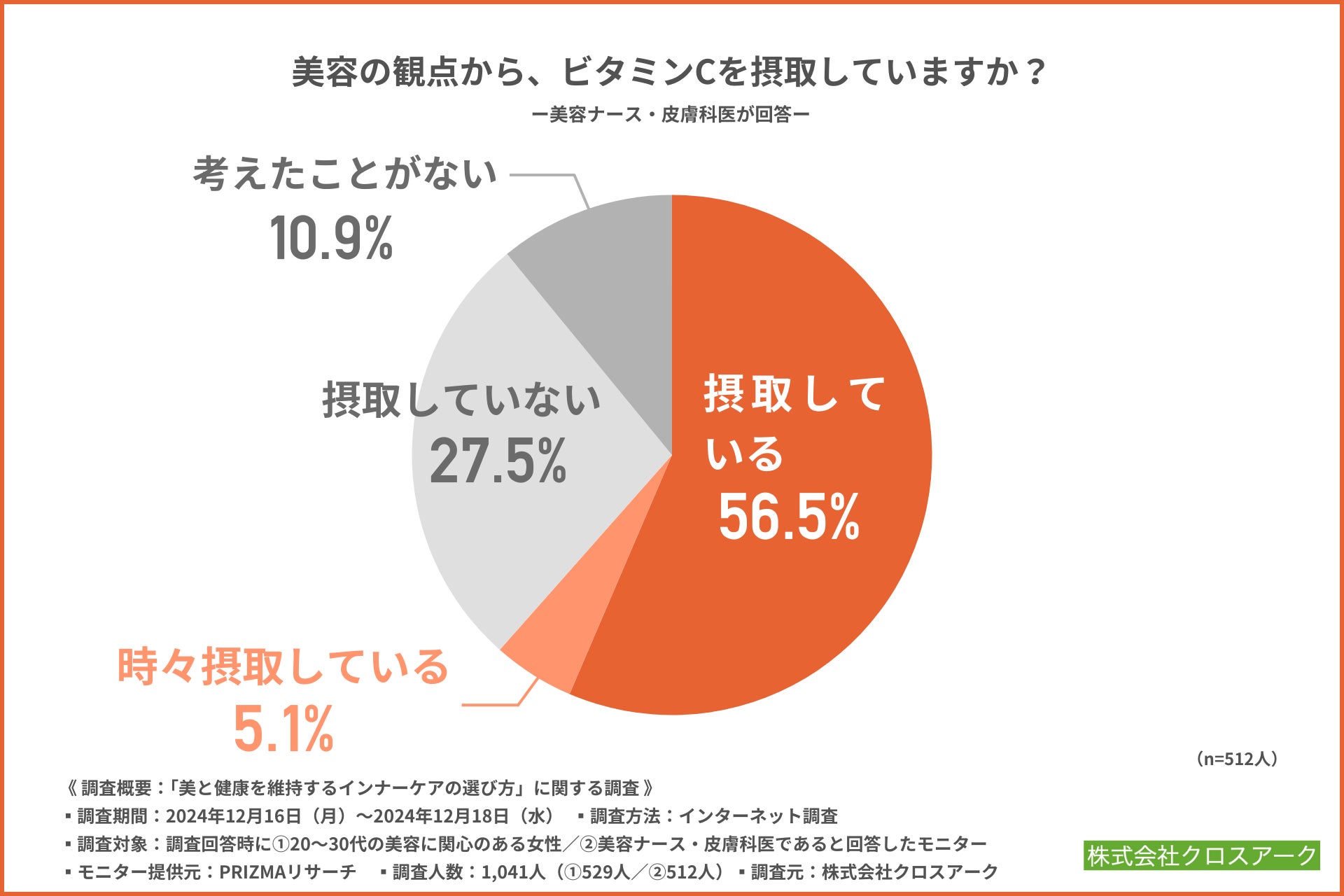20~30代の美容に関心のある女性が行っているインナーケアや、商品に入っている成分などがわかりましたが、普段からビタミンCを摂取している美容ナース・皮膚科医はどの程度いるのでしょうか。