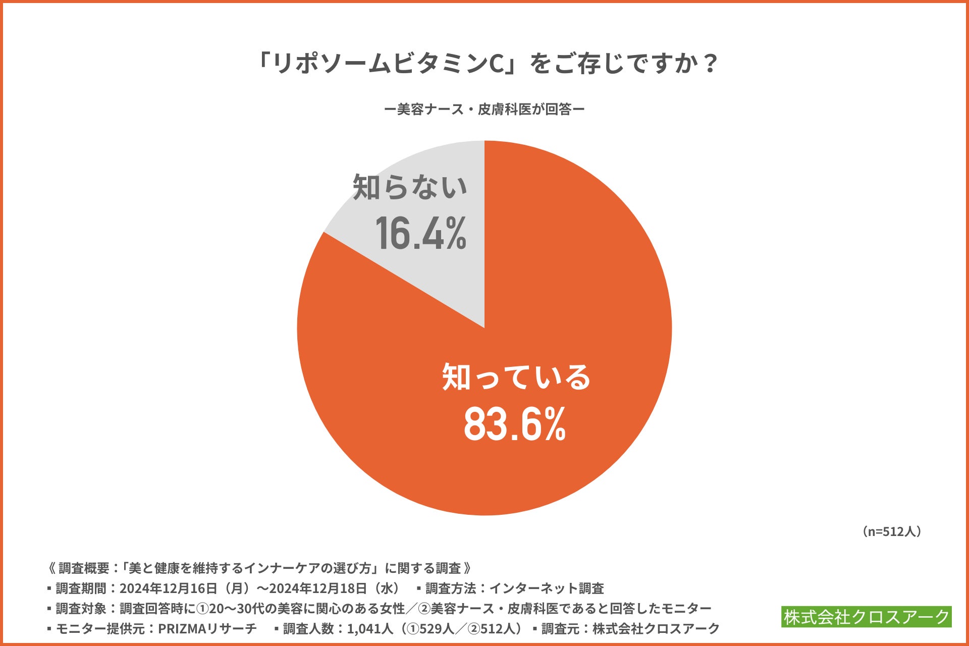 「「リポソームビタミンC」をご存じですか?」と質問したところ、約8割の方が『知っている(83.6%)』と回答しました。