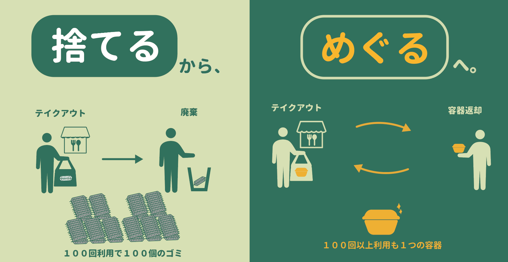 Meglooという名前には、「容器が巡る」という意味と、「ごちそうさま」「ありがとう」という感謝の気持ちも地域でめぐるという思いが込められています。