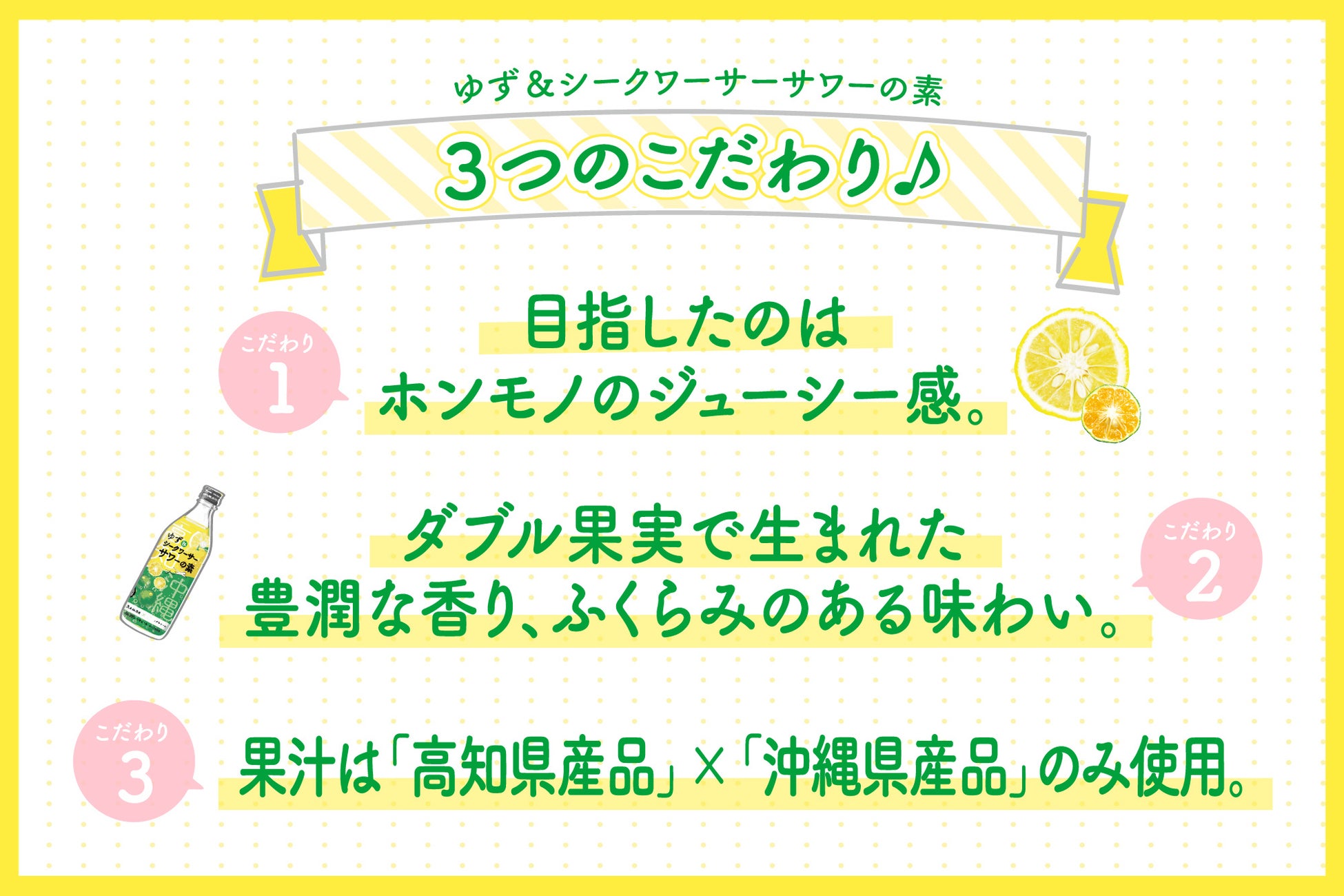 ◆ 県産品にこだわったゆずとシークワーサーを使用