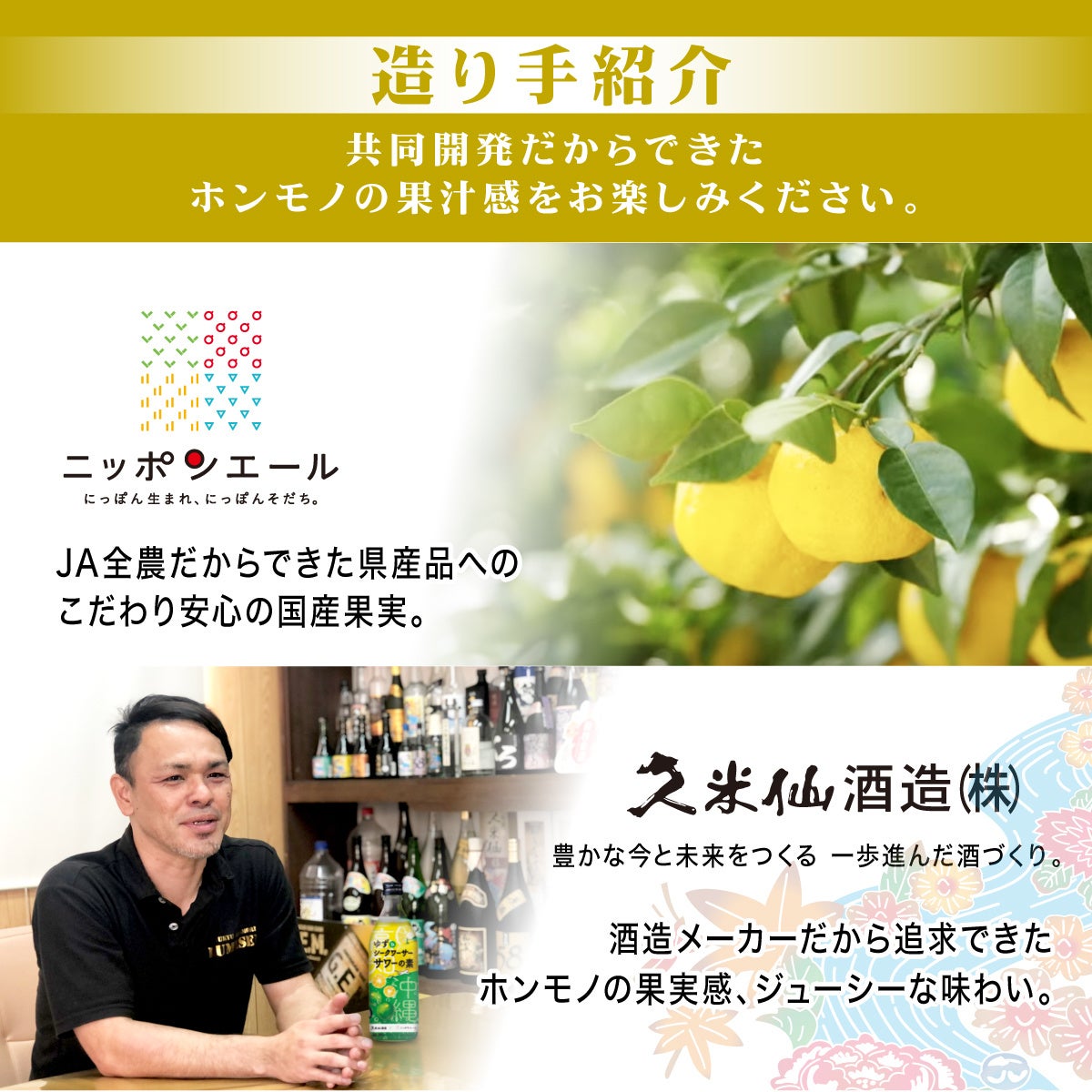 久米仙酒造× JA全農共同開発で生まれた国産果汁使用『久米仙酒造 × ニッポンエール ゆず&シークワーサーサワーの素』新発売