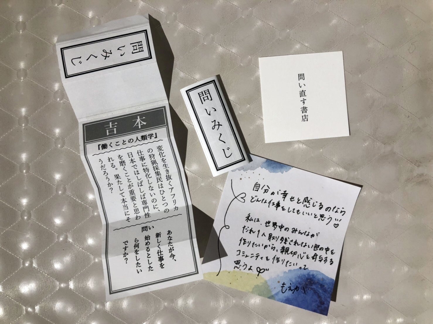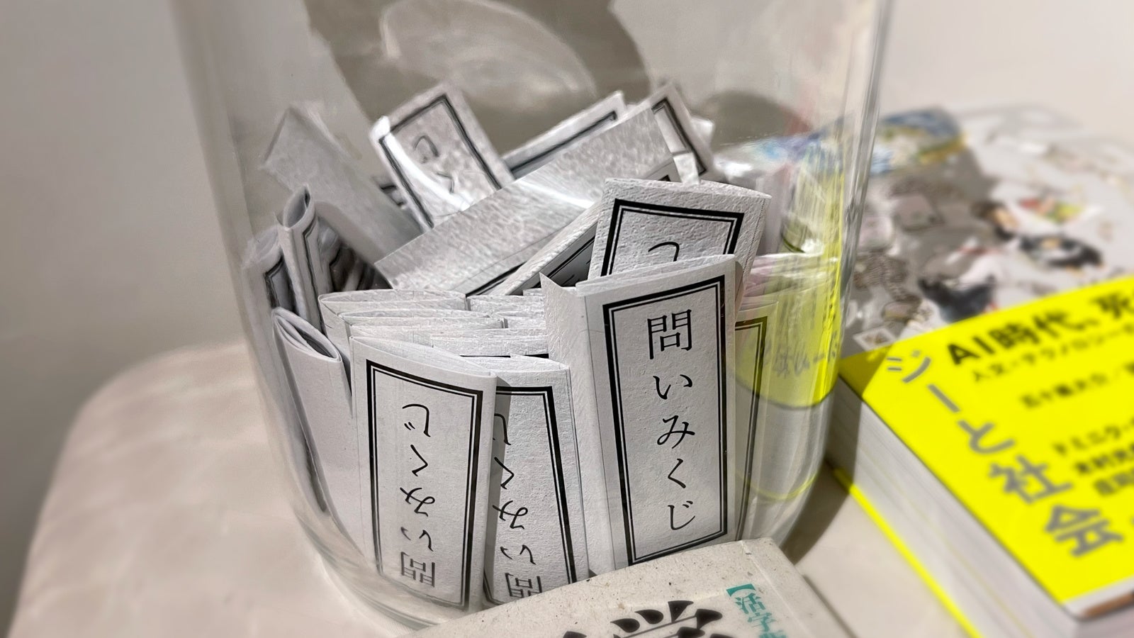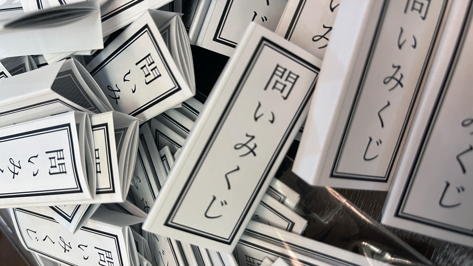 「問い直す書店」協力のもとで「問いみくじ」という新しいタイプのおみくじを用意しました。自分の理念や、新年の抱負を言語化するきっかけとなる「問い」に出会えるおみくじです。問いみくじを引いて、書かれている本(吉本)を手に取りながら、書かれている「問い」について、お酒を飲んだりご飯を食べたり隣の人と語り合ったりしながら向き合って、付箋に書いて貼り付けてみてください。