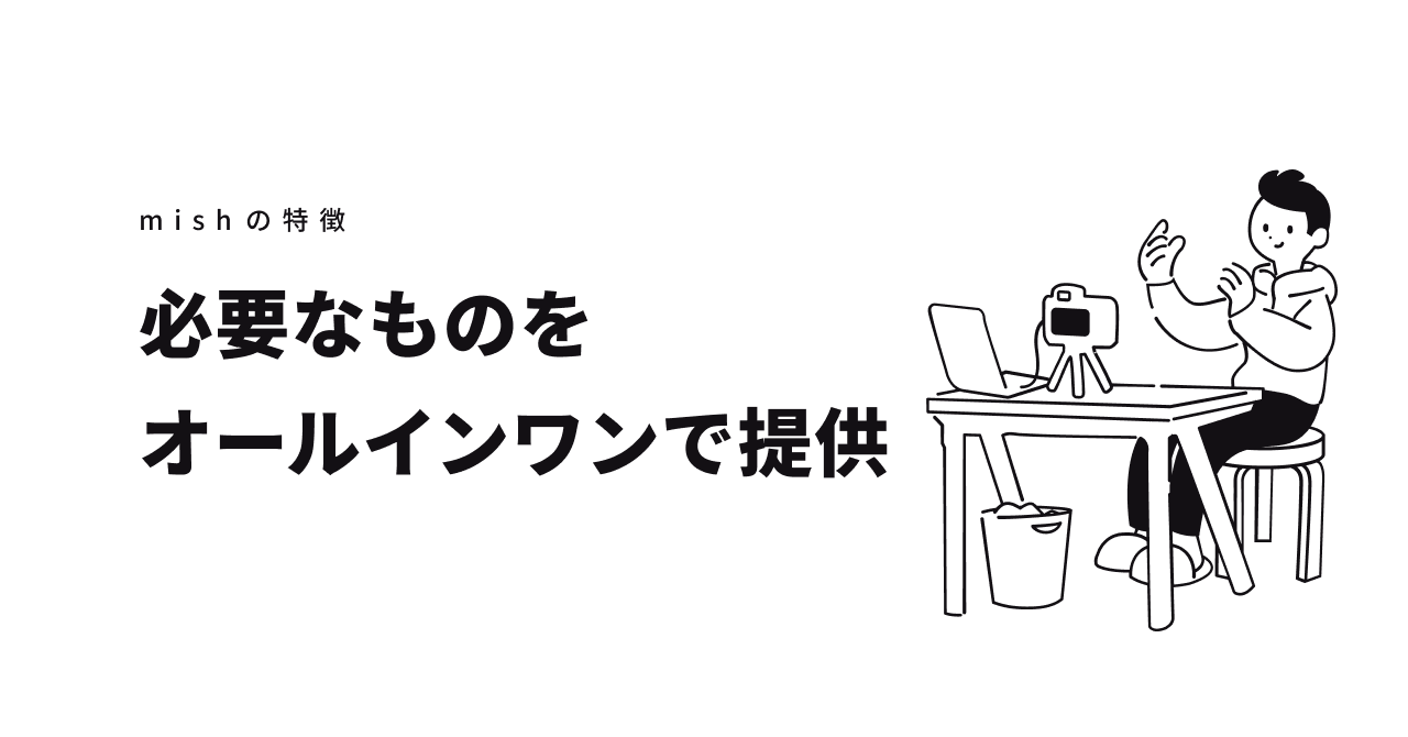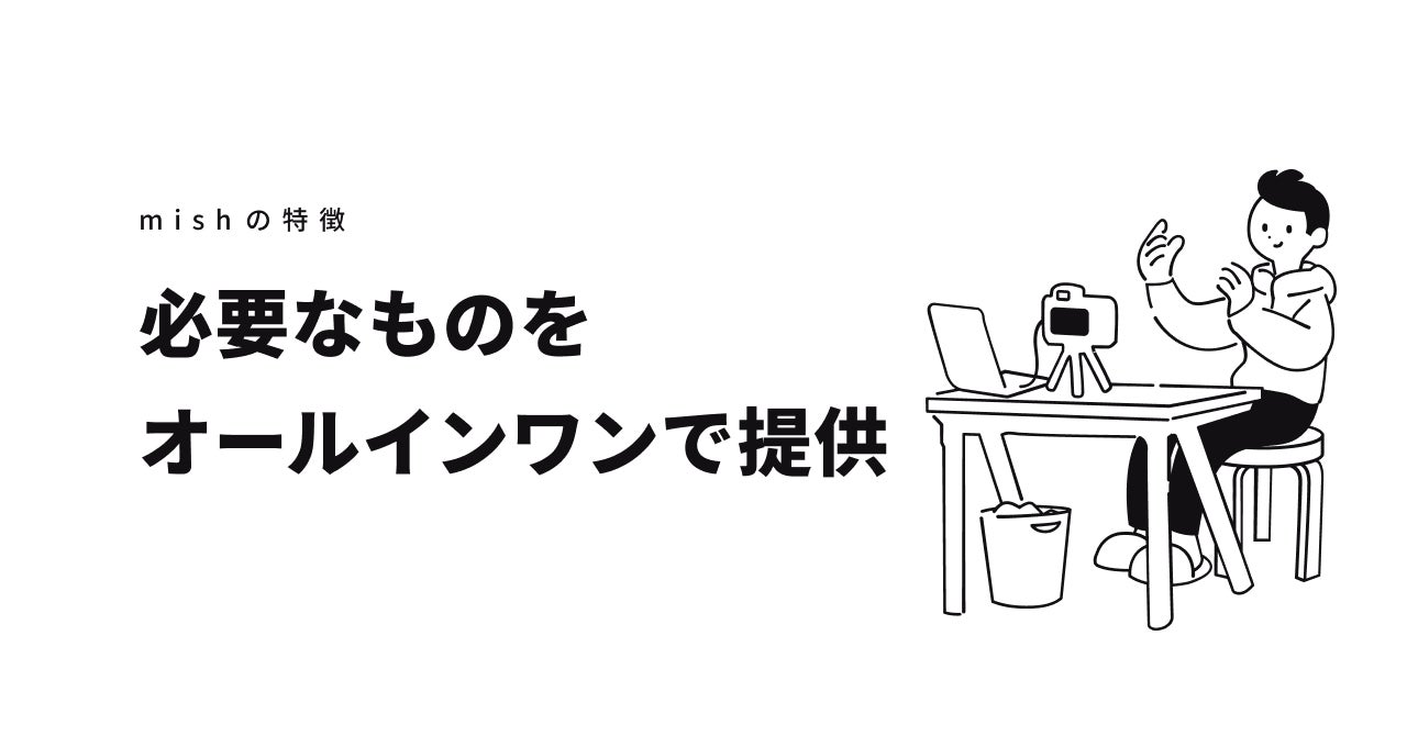 この課題を解決するために、誰でも簡単に月額会員制動画サイトを作成できることをコンセプトに『mish』を開発いたしました。