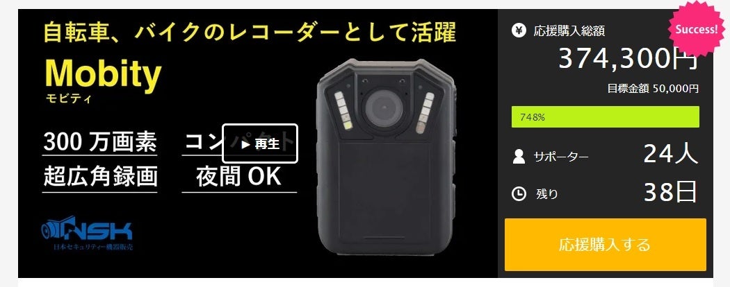 株式会社NSK(本社:愛知県名古屋市、代表取締役:宮川善貴)は、バッテリーを内蔵したモバイルカメラ「Mobity」をマクアケにてクラウドファンディング開始しました。