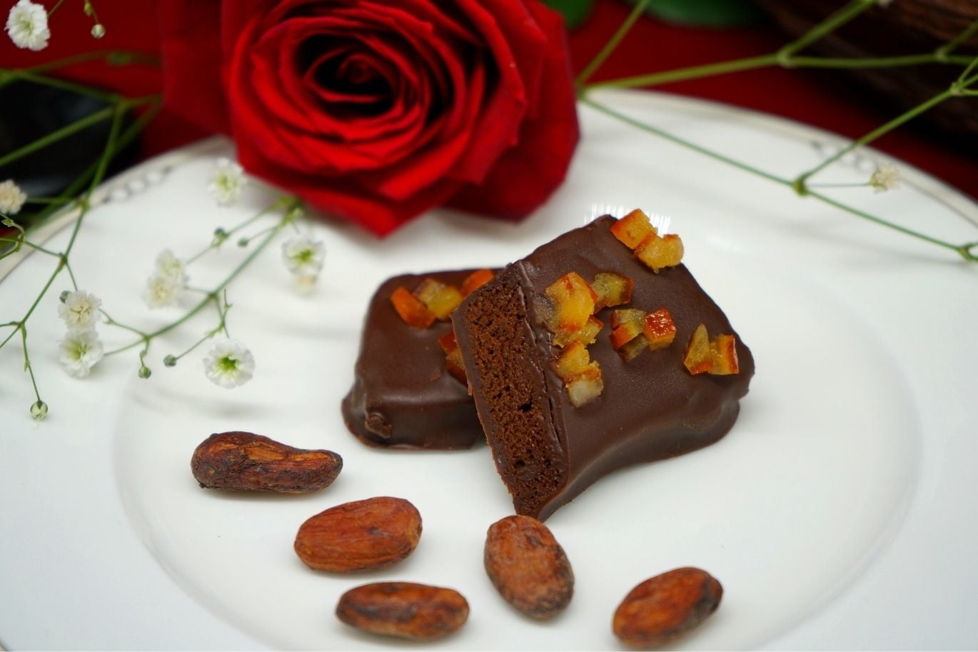 「オレンジ&赤ワイン」「ピスタチオ&バジル」「ストロベリー&クランベリー」「パッションフルーツ&マロン」の4種のフレーバーチョコレートでコーティングしたガトーショコラを4つの想いに合わせて発売。