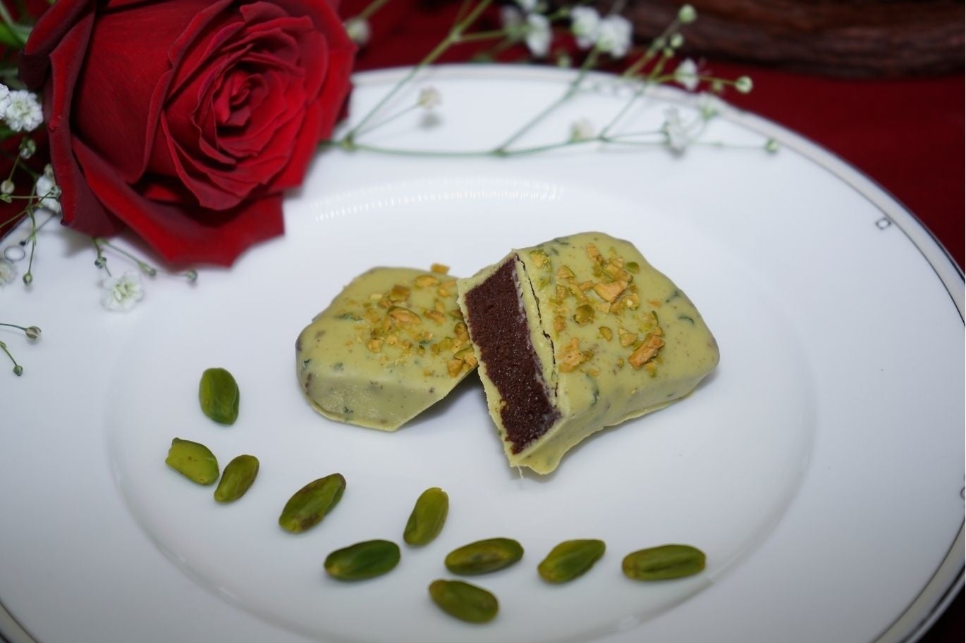 「オレンジ&赤ワイン」「ピスタチオ&バジル」「ストロベリー&クランベリー」「パッションフルーツ&マロン」の4種のフレーバーチョコレートでコーティングしたガトーショコラを4つの想いに合わせて発売。