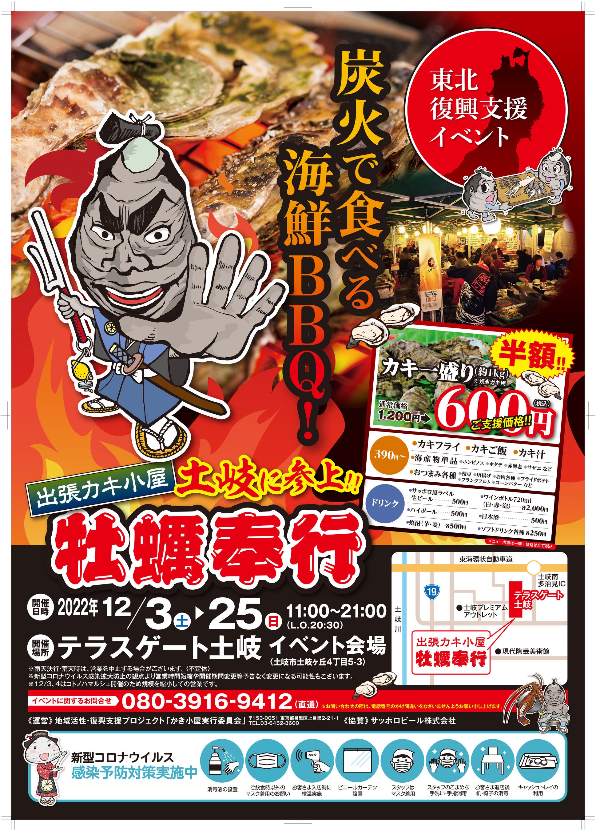 「岐阜土岐で牡蠣!」出張かき小屋が土岐に出店「地域活性・復興支援プロジェクト 出張カキ小屋 牡蠣奉行」テラスゲート土岐店(まちゆい、よりみち温泉) で期間限定イベント出店
