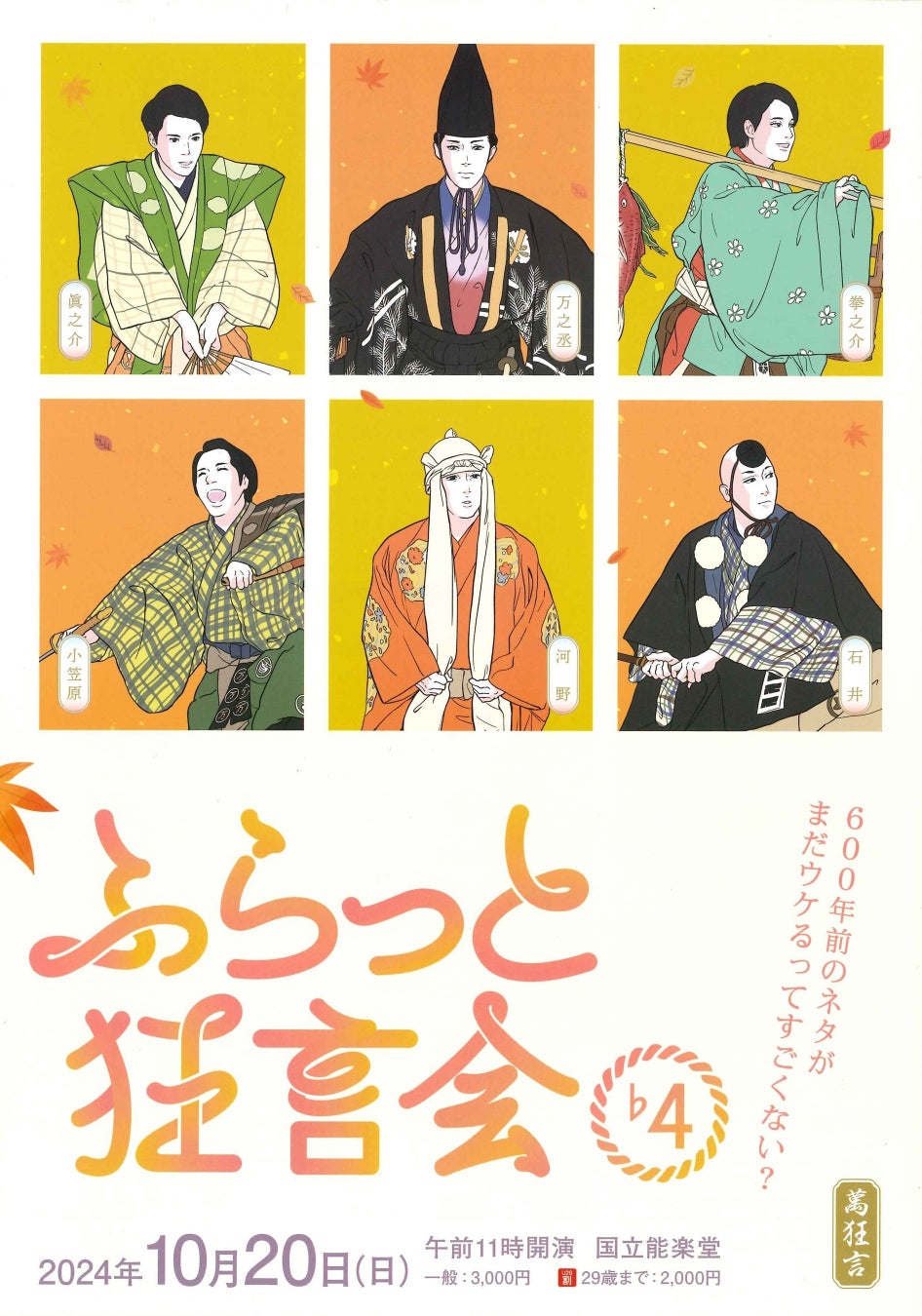 若者・初心者向けの狂言会『ふらっと狂言会♭4』10月20日(日)に国立能楽堂にて開催決定!本日8月20日(火)より、各プレイガイドにてチケット発売開始