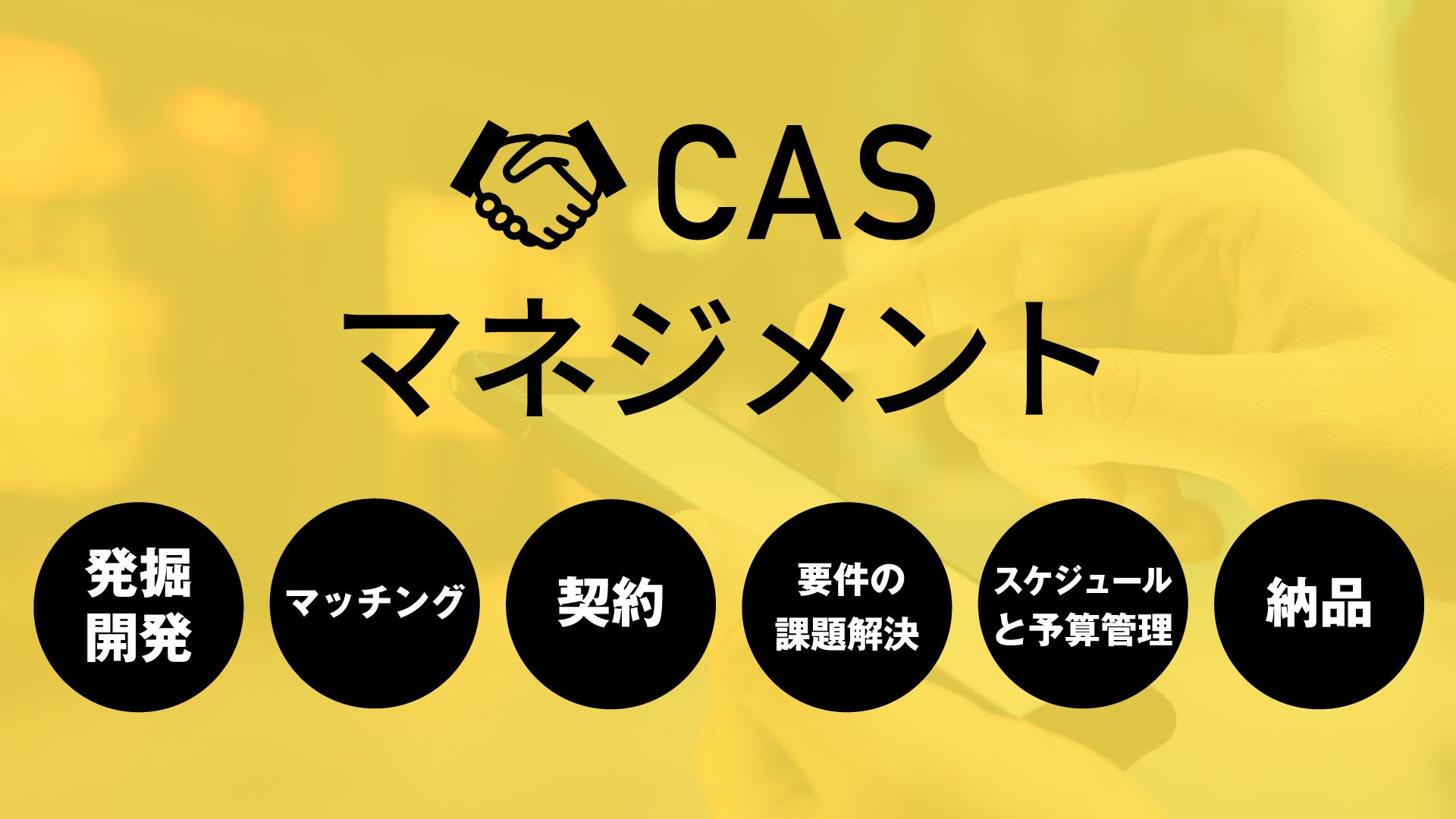 パートナーの営業代行からプロジェクト管理、スケジュール調整、要件定義、止まっている課題解決、追加見積もり、などをCASが行います。