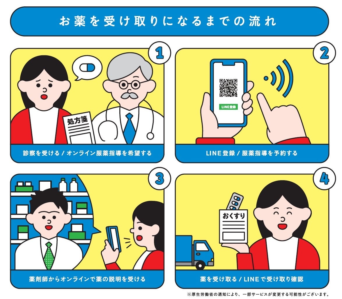 医師の診察を受けた後、処方せん医薬品を待ち時間なくオンラインで効率良く受け取れるサービスです。