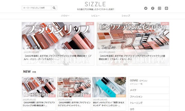 その道のプロが厳選したライフスタイルを紹介する、大人の女性に向けたWebメディア。専門家ならではのハウツーや商品レビュー、インフルエンサーによるお店の体験レポートなど厳選した情報を紹介している。YouTubeチャンネル『SIZZLE TV』のファッションやコスメ動画も好評を博す。