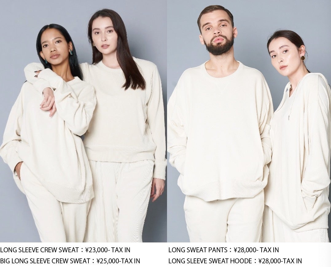 ローシルクを表に、肌側を綿糸にしたスウェット素材。ユニセックスを主体にしたアイテムのラインナップ