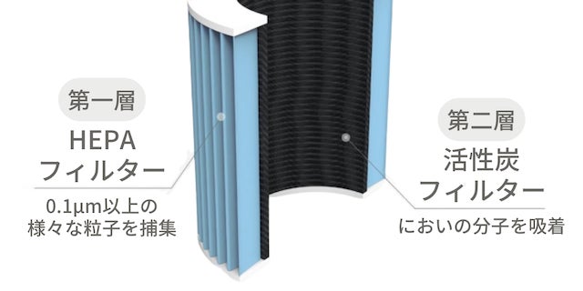 【POINT 1】2層のHEPAフィルターでPM2.5など空気中の0.1μm以上の微粒子を捕集