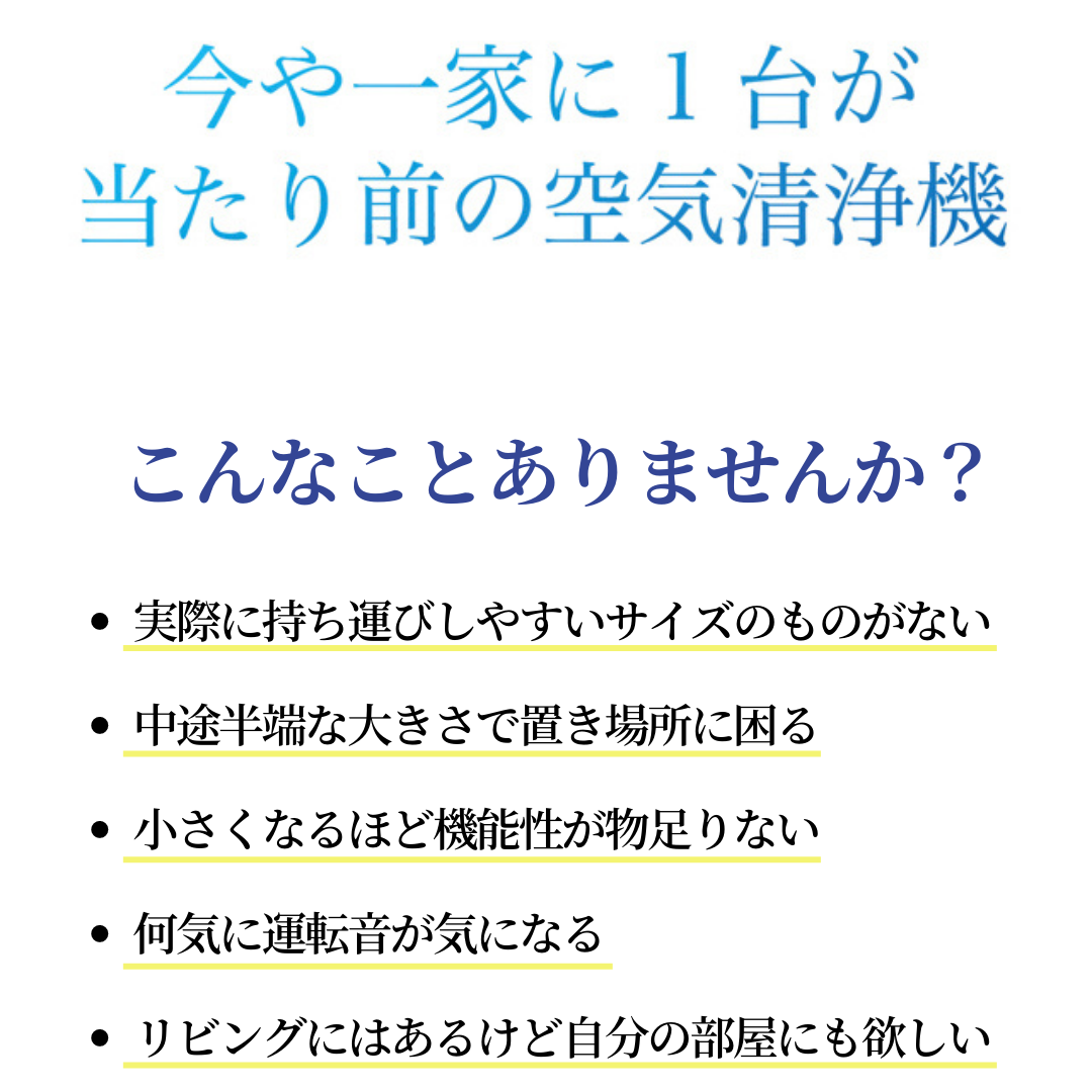 いつでも、どこでもきれいな空気を。なんでも吸い込む小型空気清浄機