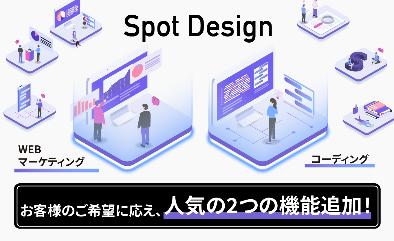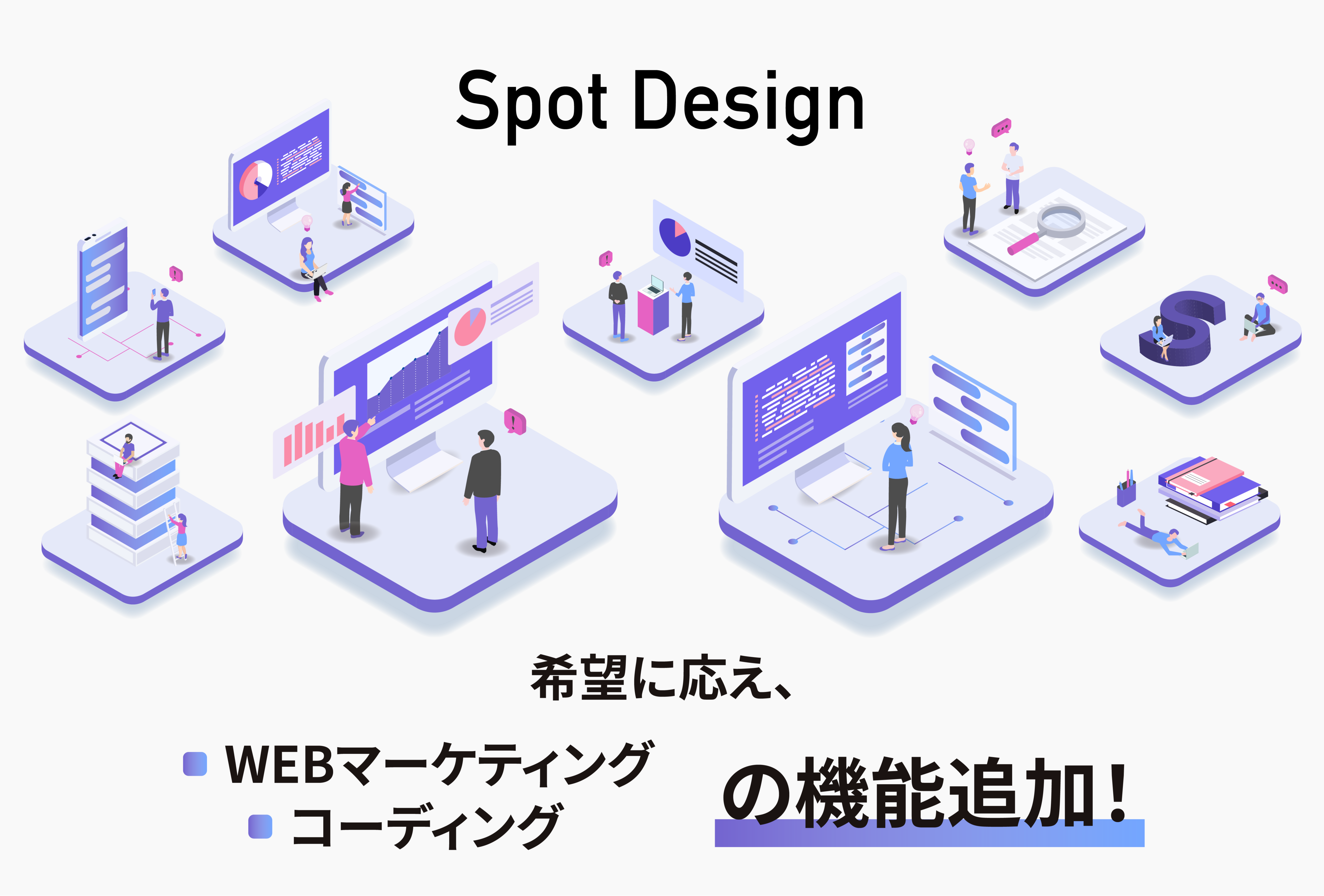 事業者向けにWebデザイン等を一手に引き受けるサービス「Spot Design」において、ビジネスを加速する支援を行うため、”Webマーケティングとコーディング”のサービスを拡充。