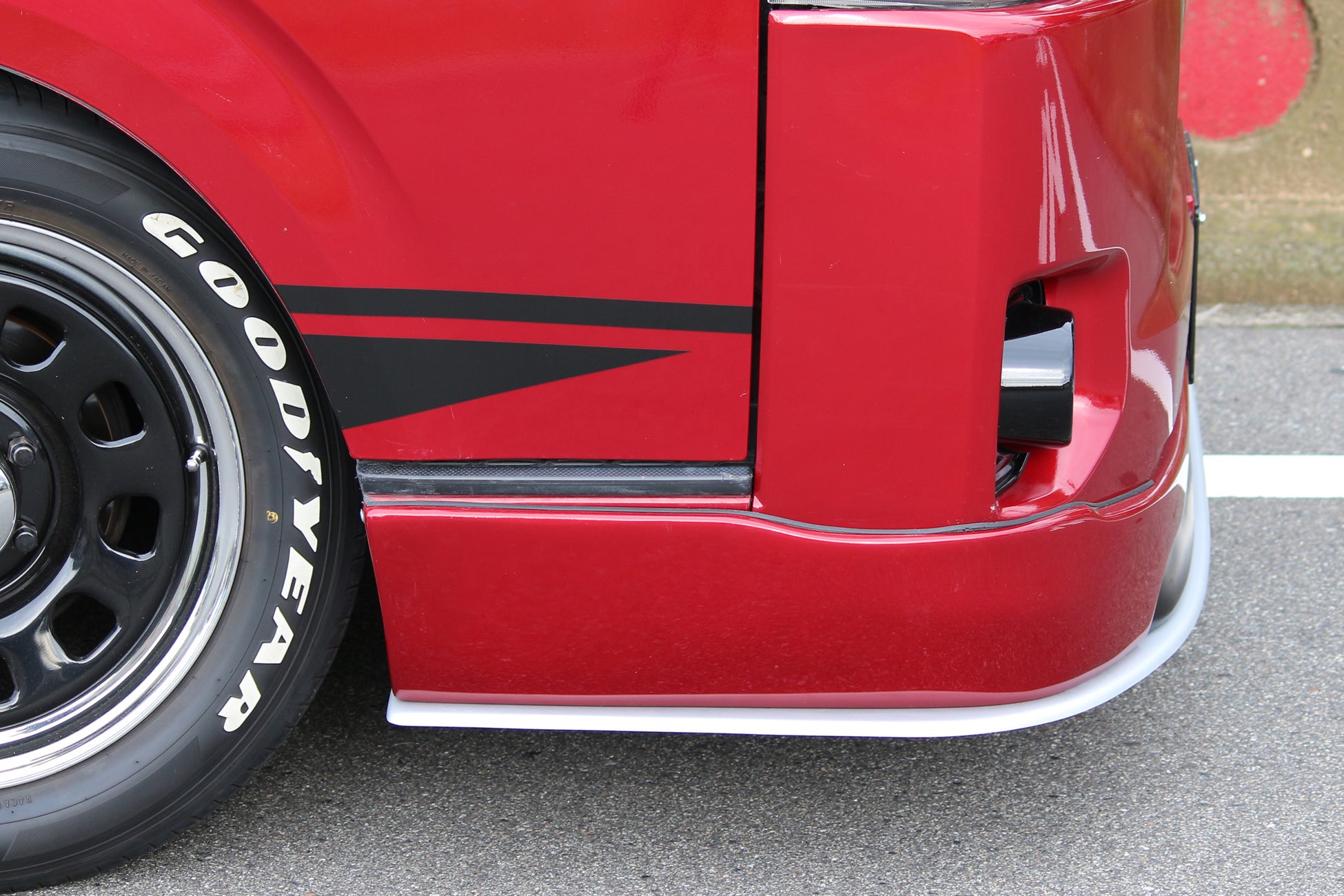 スポーティなエッジの効いたハーフタイプエアロは、純正ラインを生かしつつもしっかりとUSテイストを演出。別売りのアンダーパネル(FRP製・カーボン製の2タイプ)とあわせれば、よりアクティブなシルエットに。また、フロントハーフスポイラーは塗り分けすることでユーザー好みのフェイスに変貌。取付けも容易で気軽にドレスアップを楽しんでいただけます。